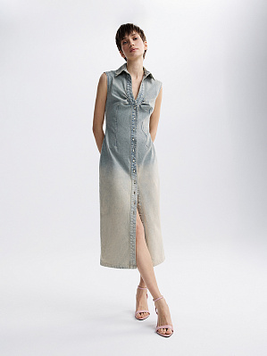Платье из денима с рукавами-рюшами
