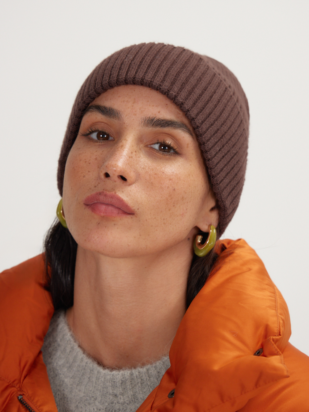 Лаконичная универсальная шапка бини завершит образ в холодный сезон. Мы связали её из пряжи с вискозой, поэтому шапка мягкая и нежная к коже. Благодаря плотной вязке в рубчик и широкому отвороту шапка защитит от холода и ветра. Шапка комфортно облегает голову и не теряет форму.