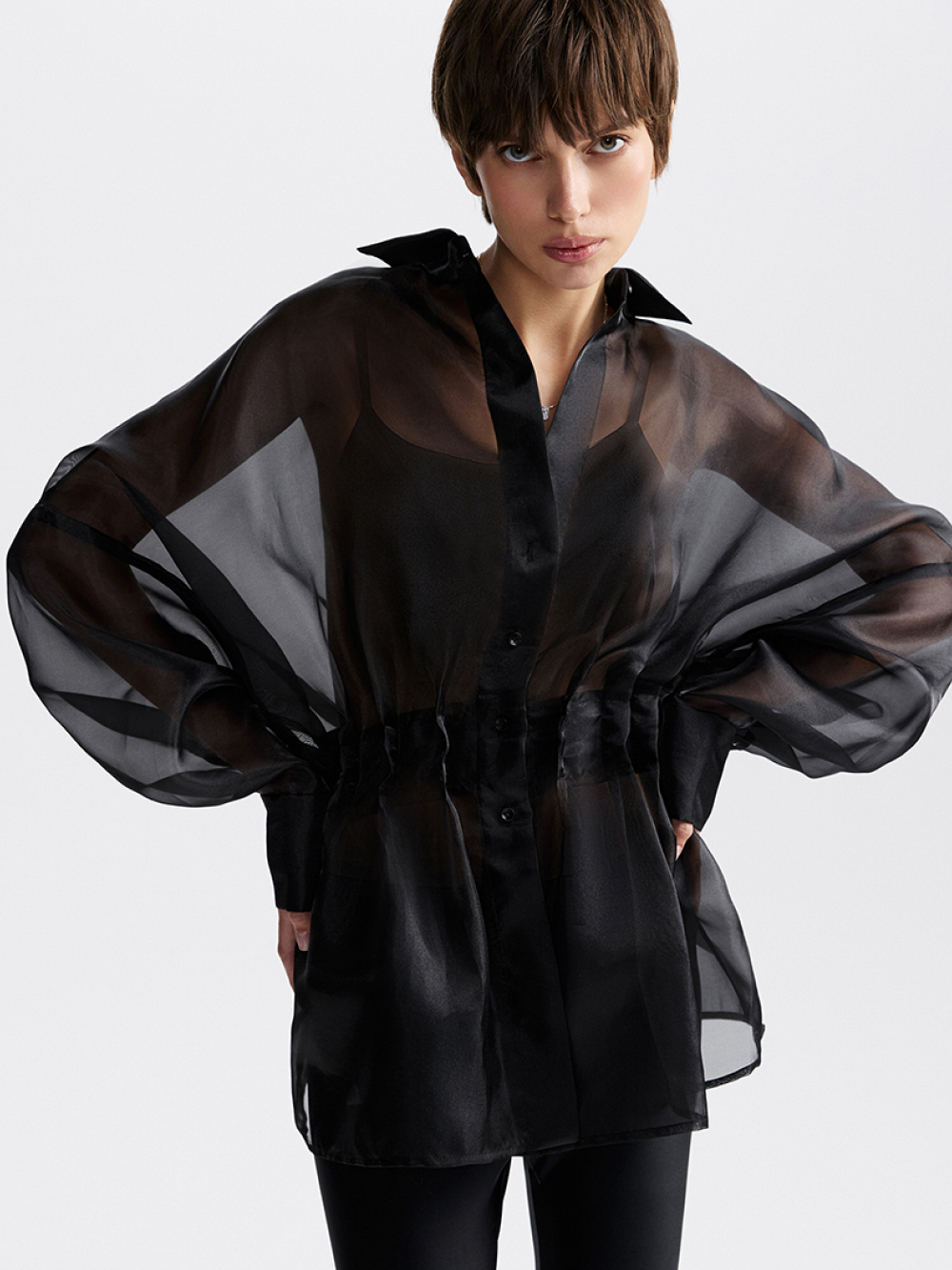 Блузка с защипами – наш бестселлер, представлена в исполнении из матовой органзы. Великолепная в драпировке органза хорошо держит форму, а защипы делают модель воздушной с акцентом на талии. Мы уплотнили пояс с защипами, чтобы сделать силуэт более собранным. Блузка застёгивается на пуговицы. Рукав объёмный, со “стекающей” линией плеча, манжет на пуговицах. Мы всегда заботимся об эстетике изнаночной стороны, и во всех изделиях из органзы внутренние швы аккуратно закрыты.