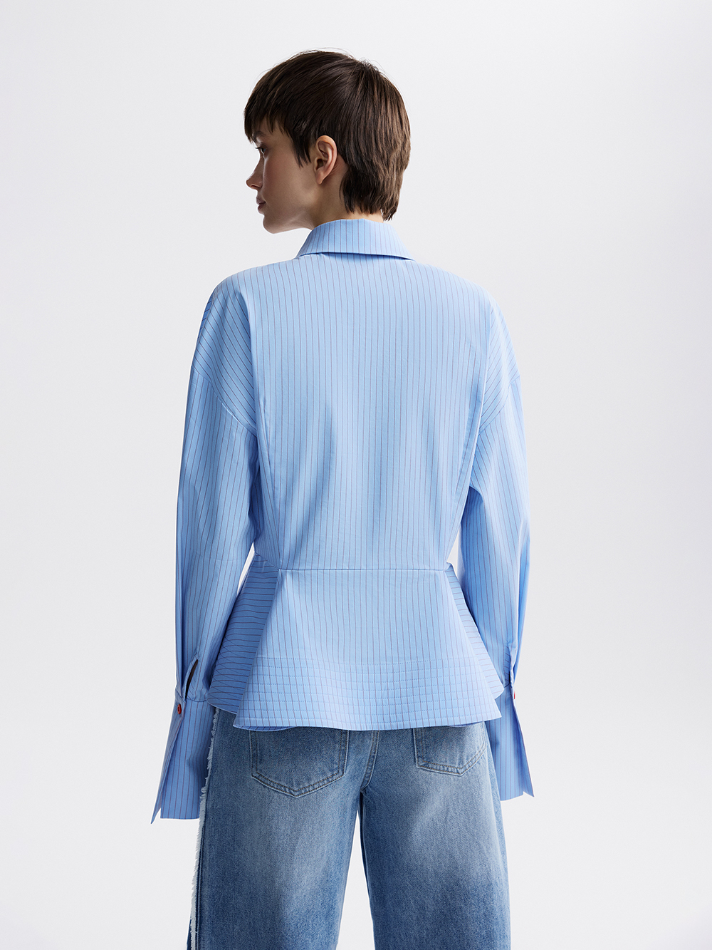 На модели рубашка размера S