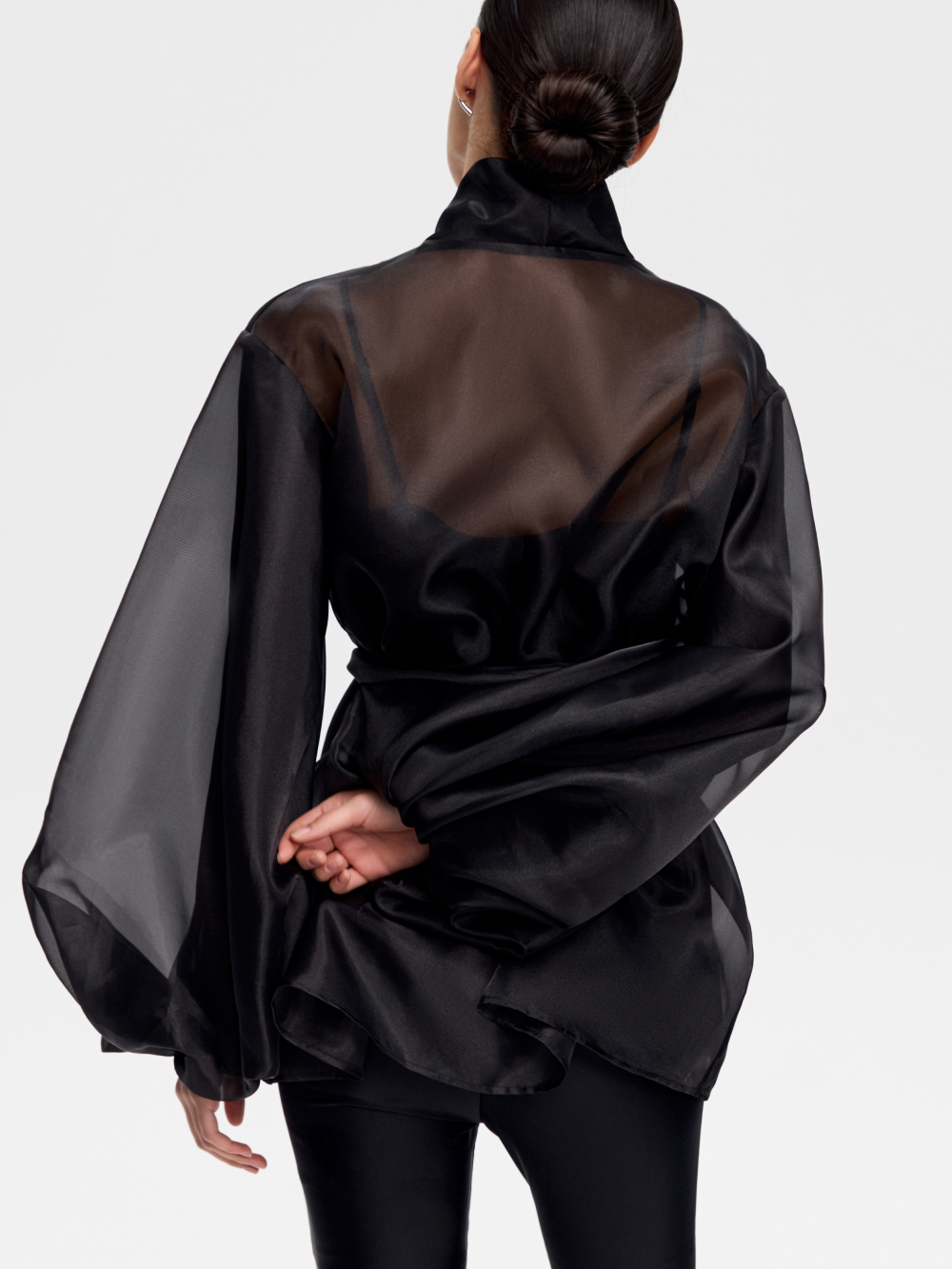 Туника из органзы – знаковая модель и наш бестселлер. Выполнена из матовой органзы, которая великолепна в драпировке и приятна к телу. Выразительные рукава зафиксированы на внутреннюю мягкую сетку и сохраняют форму. Внутренние швы аккуратно закрыты. В комплект входит широкий пояс-лента из основной ткани. Туника идеальна в дуэте с топами в бельевом стиле.