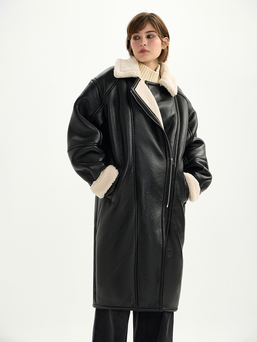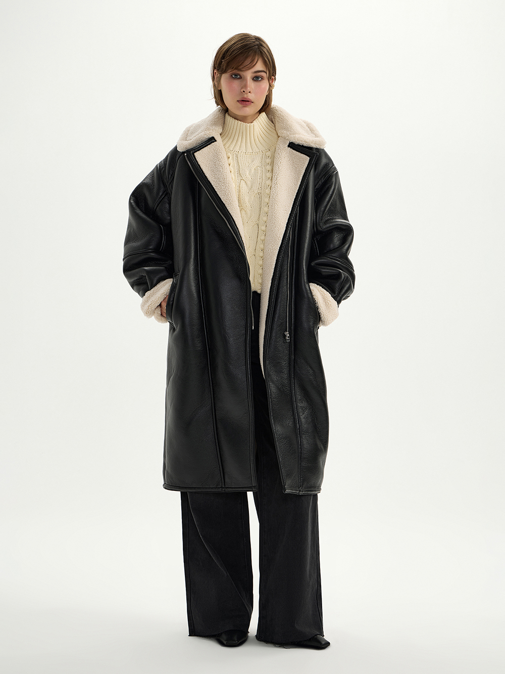 Дублёнка с искусственным мехом, стильная и современная, идеально впишется в актуальный образ на холодный сезон. Продуманный лёгкий оверсайз дарит свободу, но не придаёт лишний объём силуэту. Благодаря лаконичной форме и длине миди дублёнку можно носить как с элегантным костюмом, так и с джинсами и вязаным трикотажем.