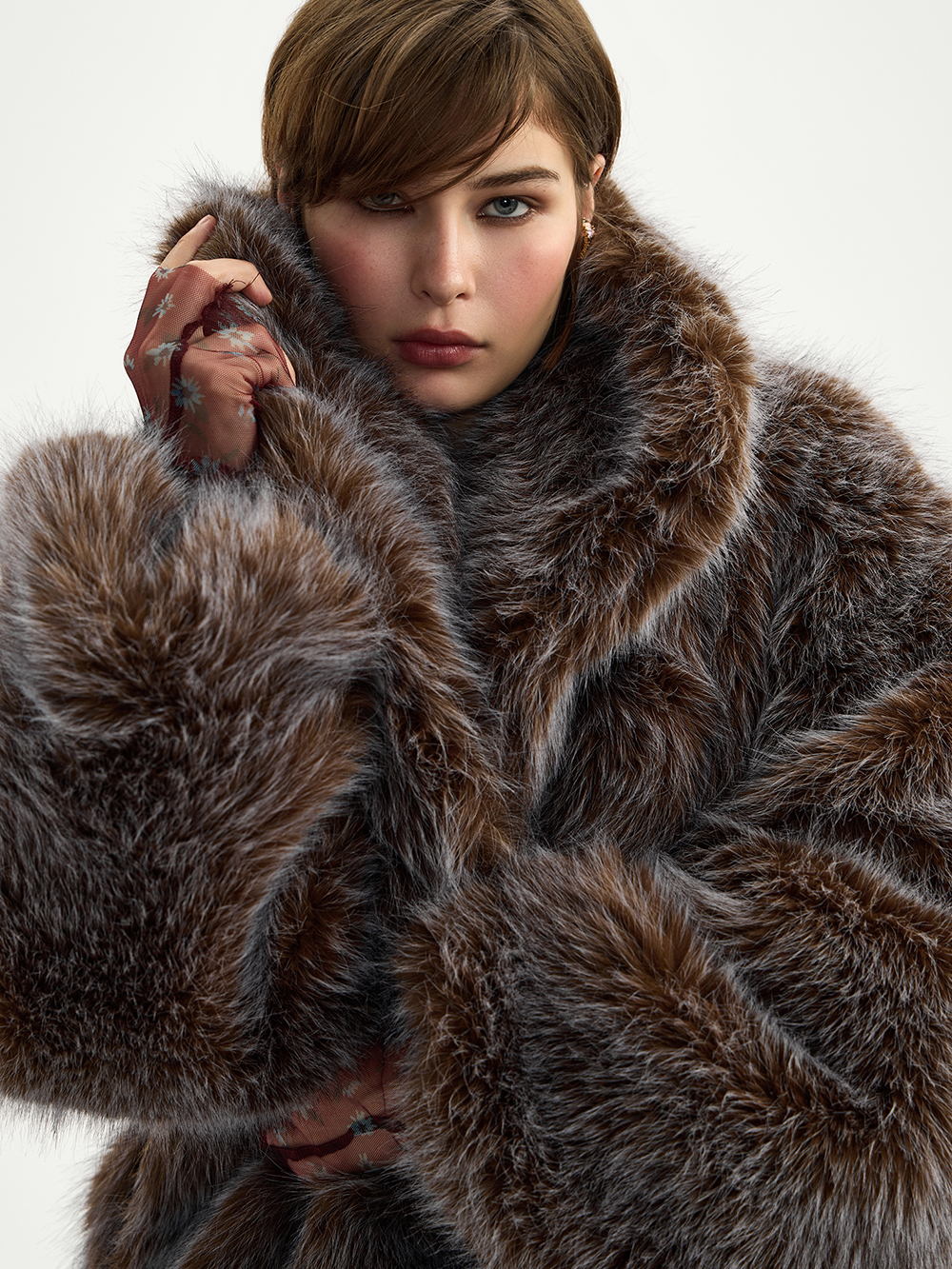 На модели  шуба размера XS