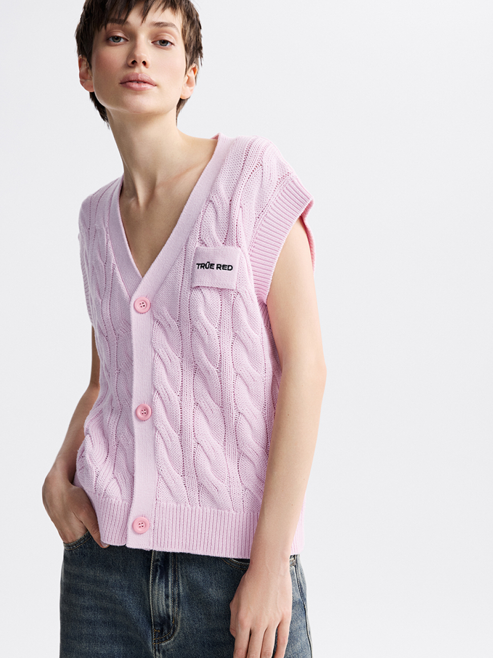 На модели безрукавка размера S