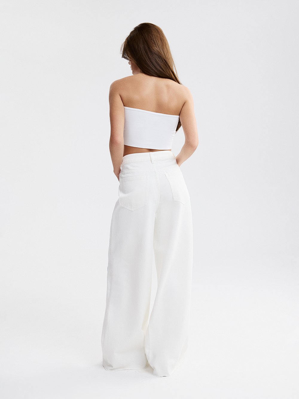 На модели джинсы размера 26