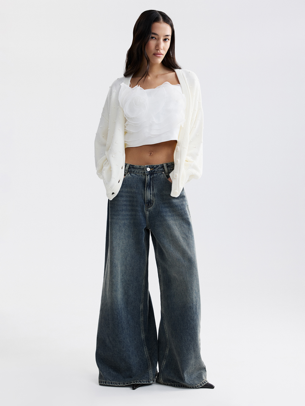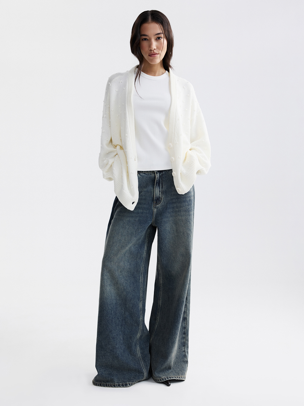 На модели кардиган размера М