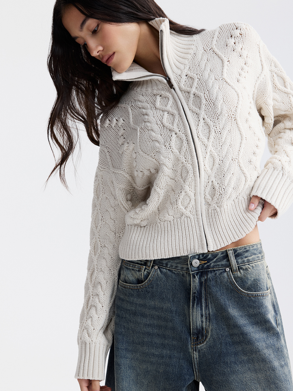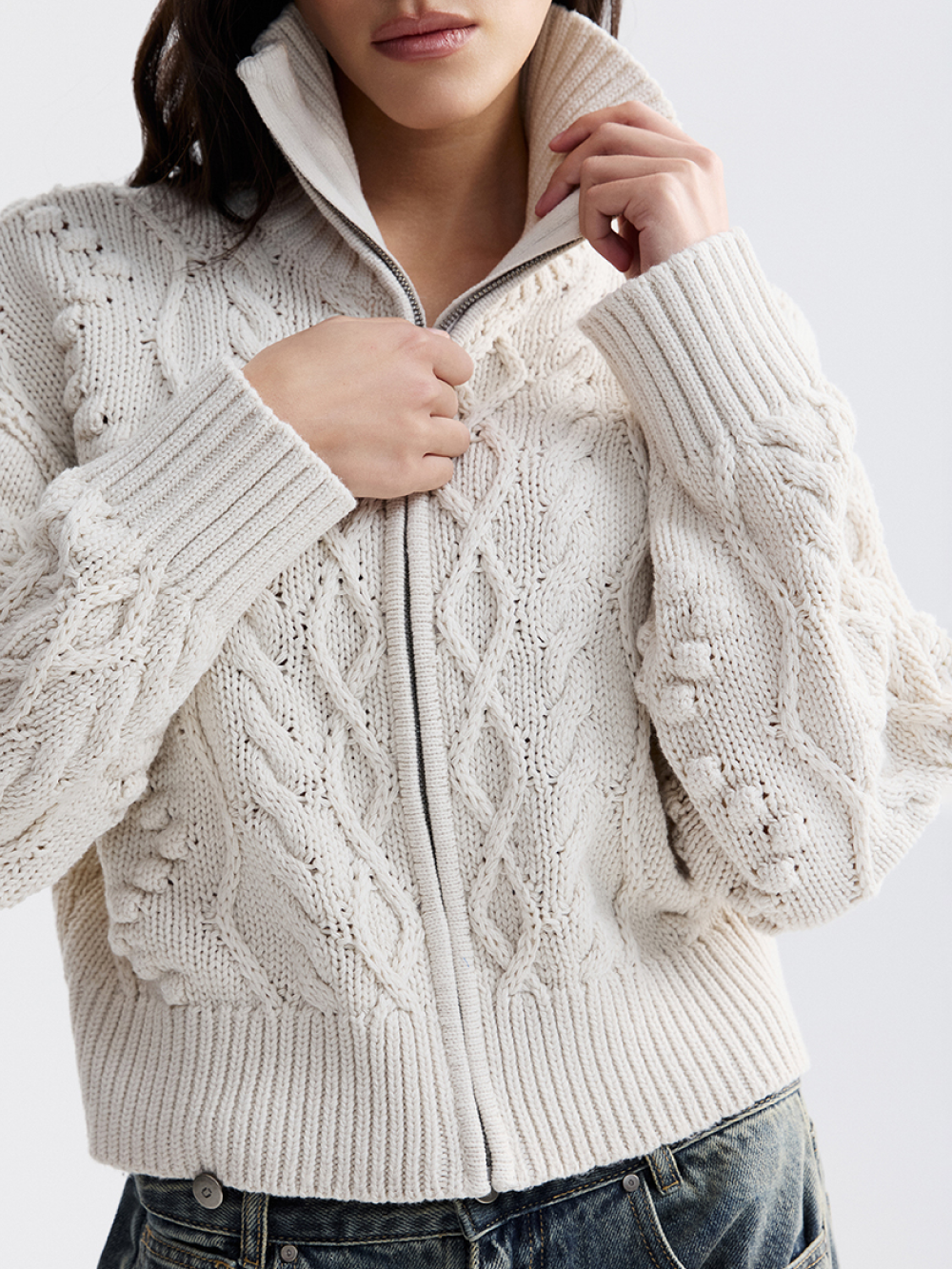 Толстовка на молнии с рельефной вязкой