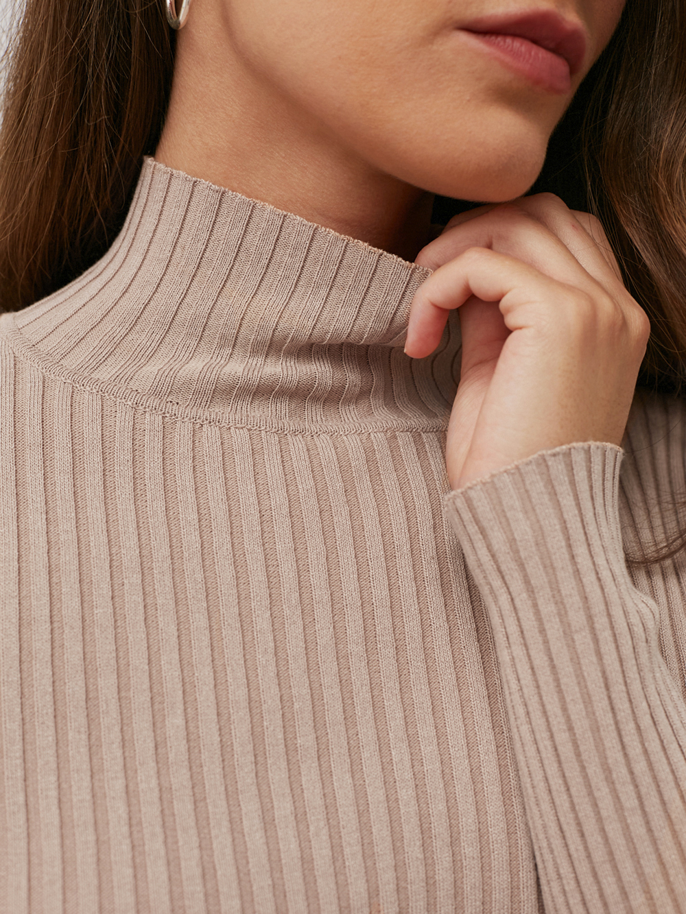 Базовая водолазка из нежной гладкой вискозы. Такой трикотаж комфортный, приятный к коже и с шелковистой фактурой. Благодаря мягкому прилеганию водолазка аккуратно подчеркнёт фигуру. Воротник средней высоты не давит, позволяет обходиться без шарфа и в то же время в водолазке не будет жарко в помещении. Предлагаем носить как сольно с брюками и джинсами, так и сочетать с жакетами и сарафаном из коллекции SOLO·U.