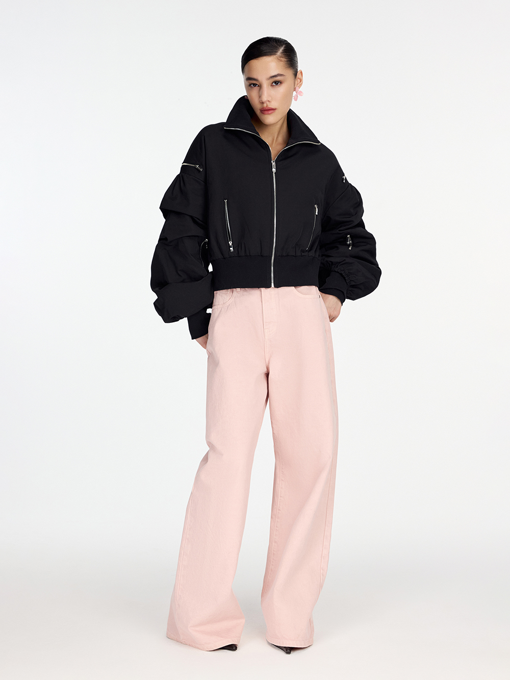 Бомбер с вышивкой для стильных повседневных образов. Акцентные рукава по сложному дизайнерскому решению – двойные, выразительная драпировка зафиксирована. Вышивка на спине создана по рисунку дизайнеров бренда. Бомбер отличается комфортом: основная ткань на основе плотного хлопка, есть мягкая подкладка. Утеплитель делает бомбер согревающим и уютным. Есть карманы.