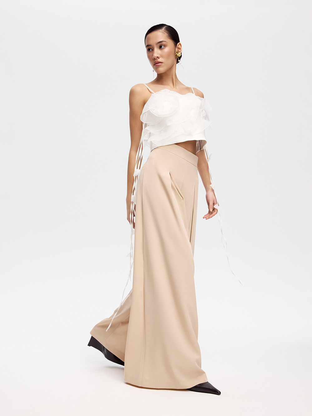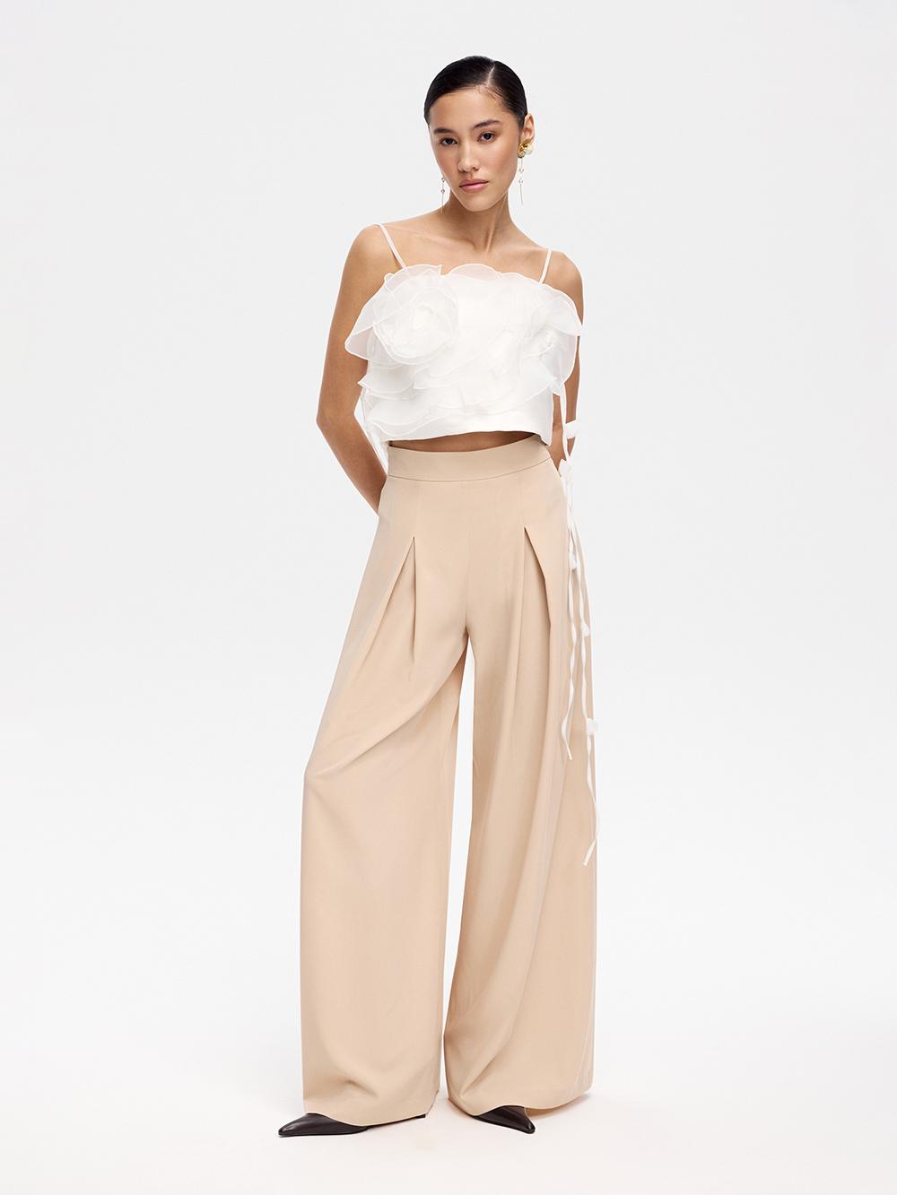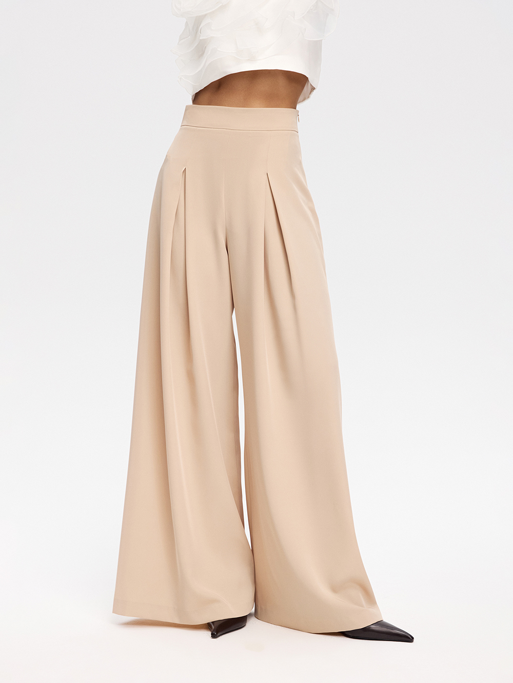Брюки-палаццо со встречной складкой