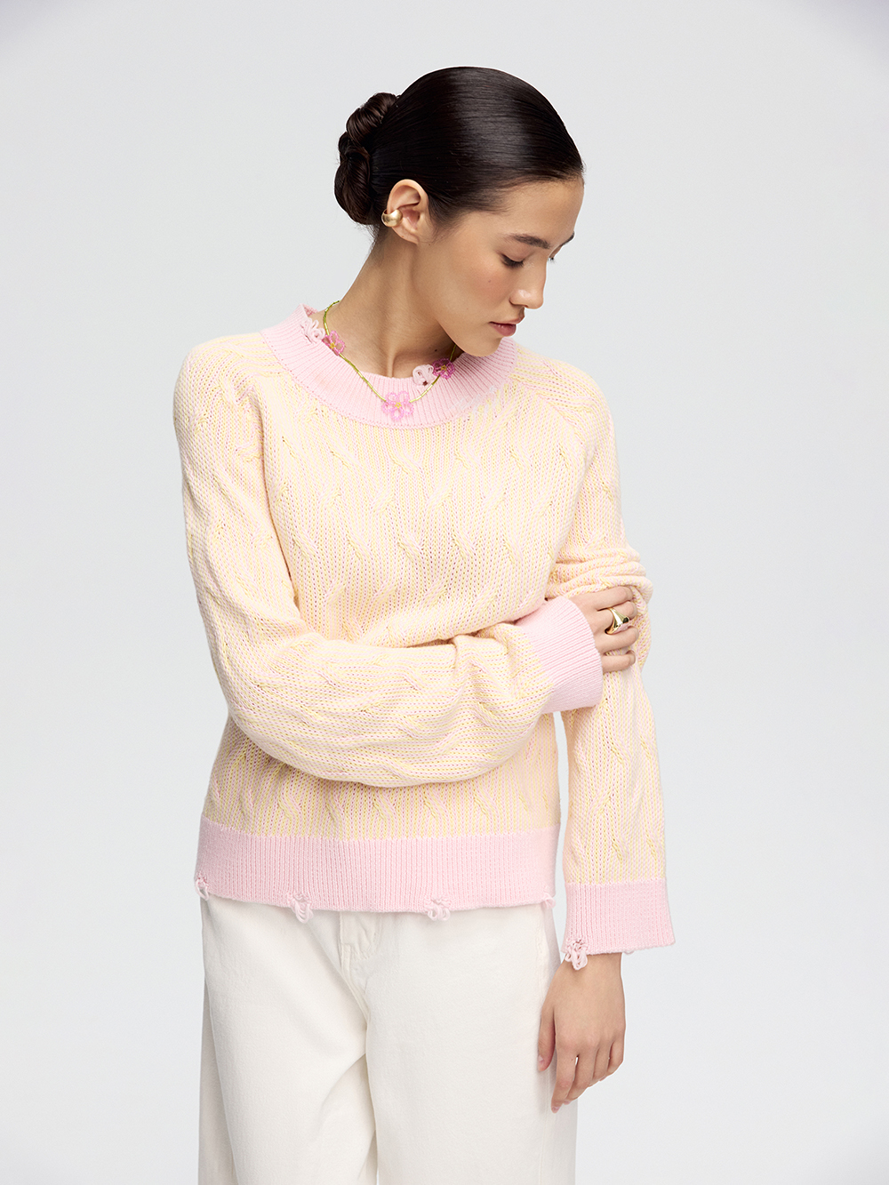 Мягкий свитер с фактурным узором и характером гранж. Свободный силуэт, аккуратный объём, рукав реглан – и спущенные петли на контрастной резинке создают ощущение мягкой расслабленности. Свитер связан из комфортной хлопковой пряжи с добавлением акрила для лёгкости, воздушности и сохранения формы изделия. Идеальная пара для джинсов из коллекции TRUE RED.