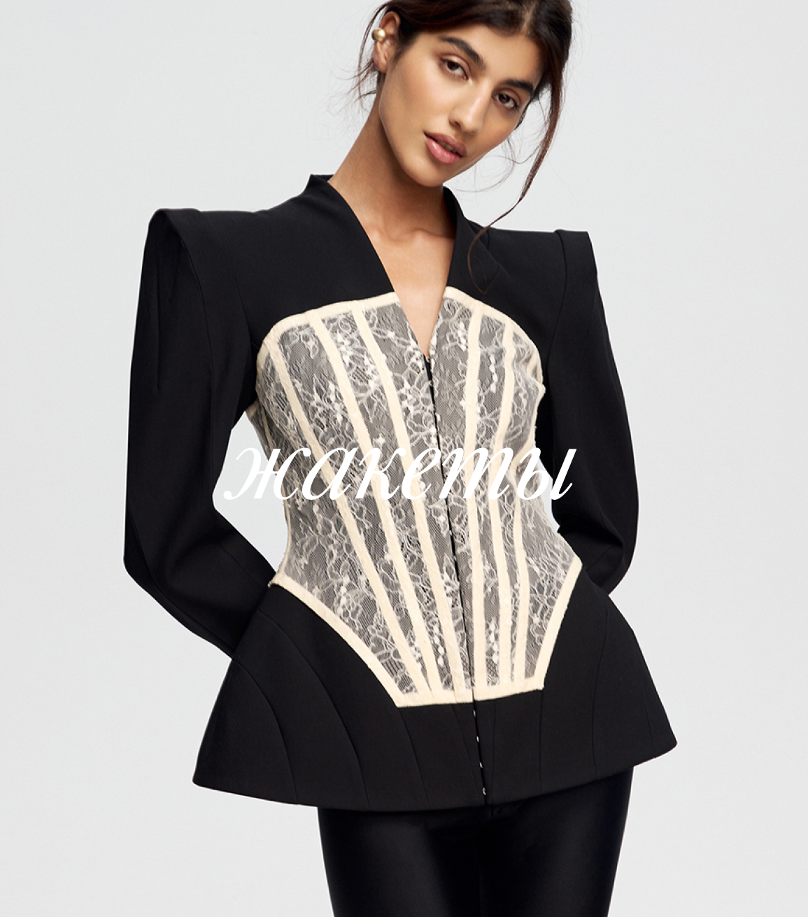 Жакет с баской с акцентными пуговицами