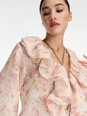 Блузка с оборкой из тенсела и льна