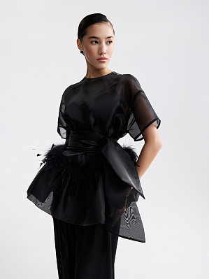 Топ из органзы с перьями