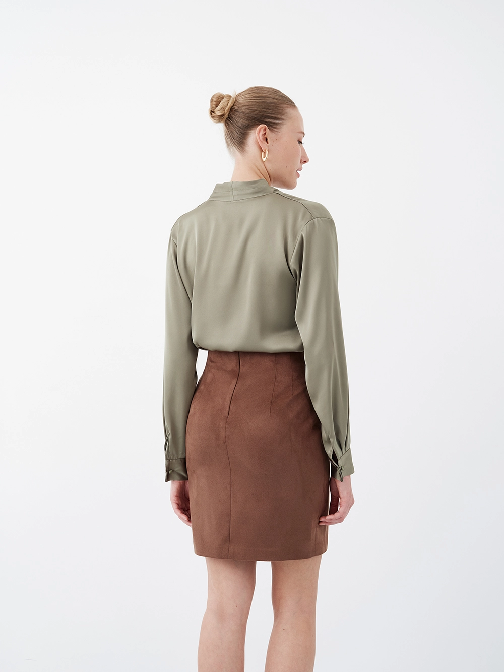 Блузка на запах из гладкой струящейся ткани с шёлком в составе. Та самая модель, которая подходит любому типу фигуры, визуально стройнит и вытягивает силуэт. Запах фиксируется на наружные и внутренние завязки. На рукавах выполнены петли под запонки и поставлены матовые пуговицы. Вы можете заправить блузку или носить навыпуск по своему желанию.