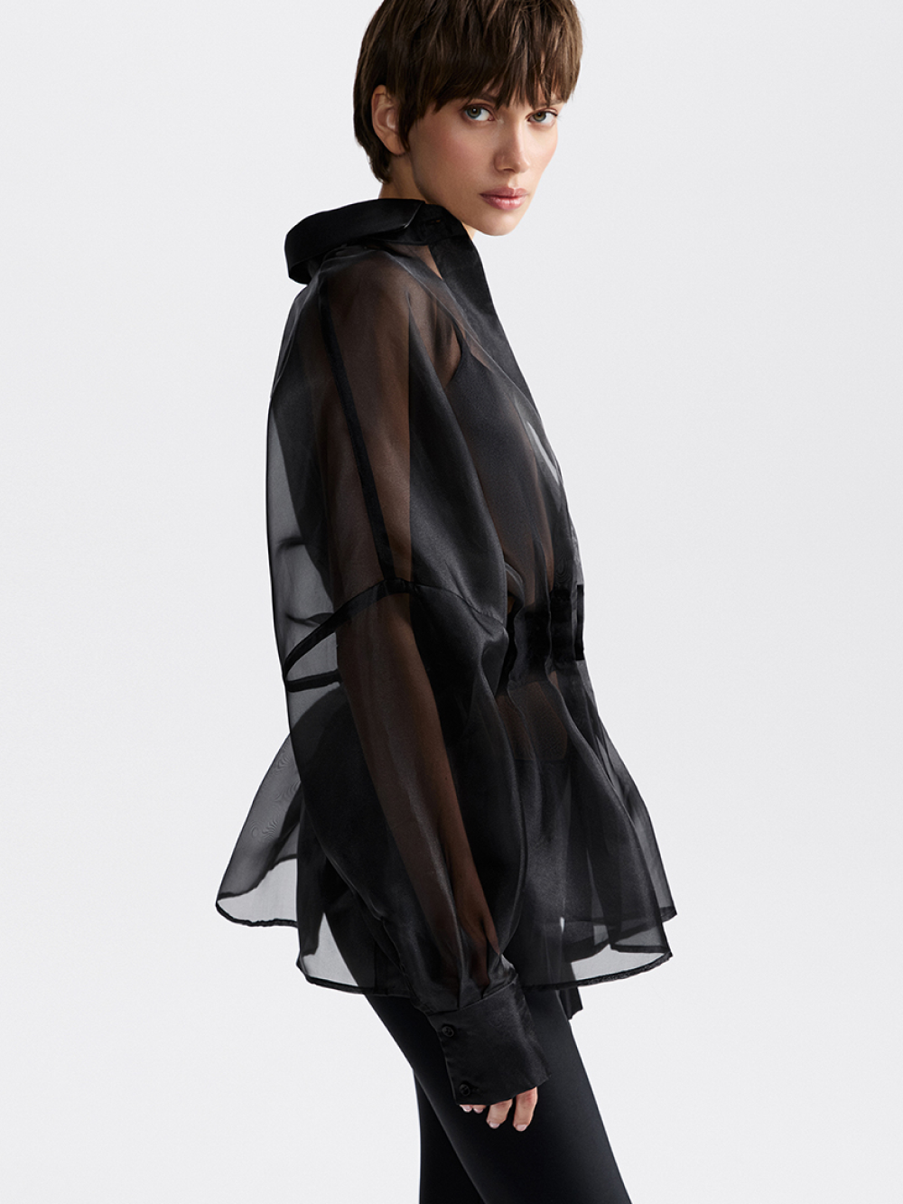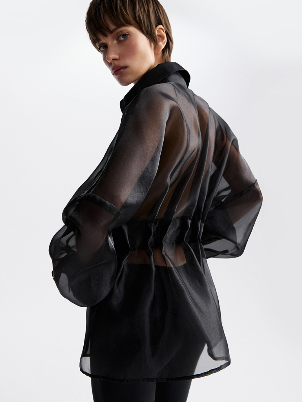 Блузка с защипами – наш бестселлер, представлена в исполнении из матовой органзы. Великолепная в драпировке органза хорошо держит форму, а защипы делают модель воздушной с акцентом на талии. Мы уплотнили пояс с защипами, чтобы сделать силуэт более собранным. Блузка застёгивается на пуговицы. Рукав объёмный, со “стекающей” линией плеча, манжет на пуговицах. Мы всегда заботимся об эстетике изнаночной стороны, и во всех изделиях из органзы внутренние швы аккуратно закрыты.