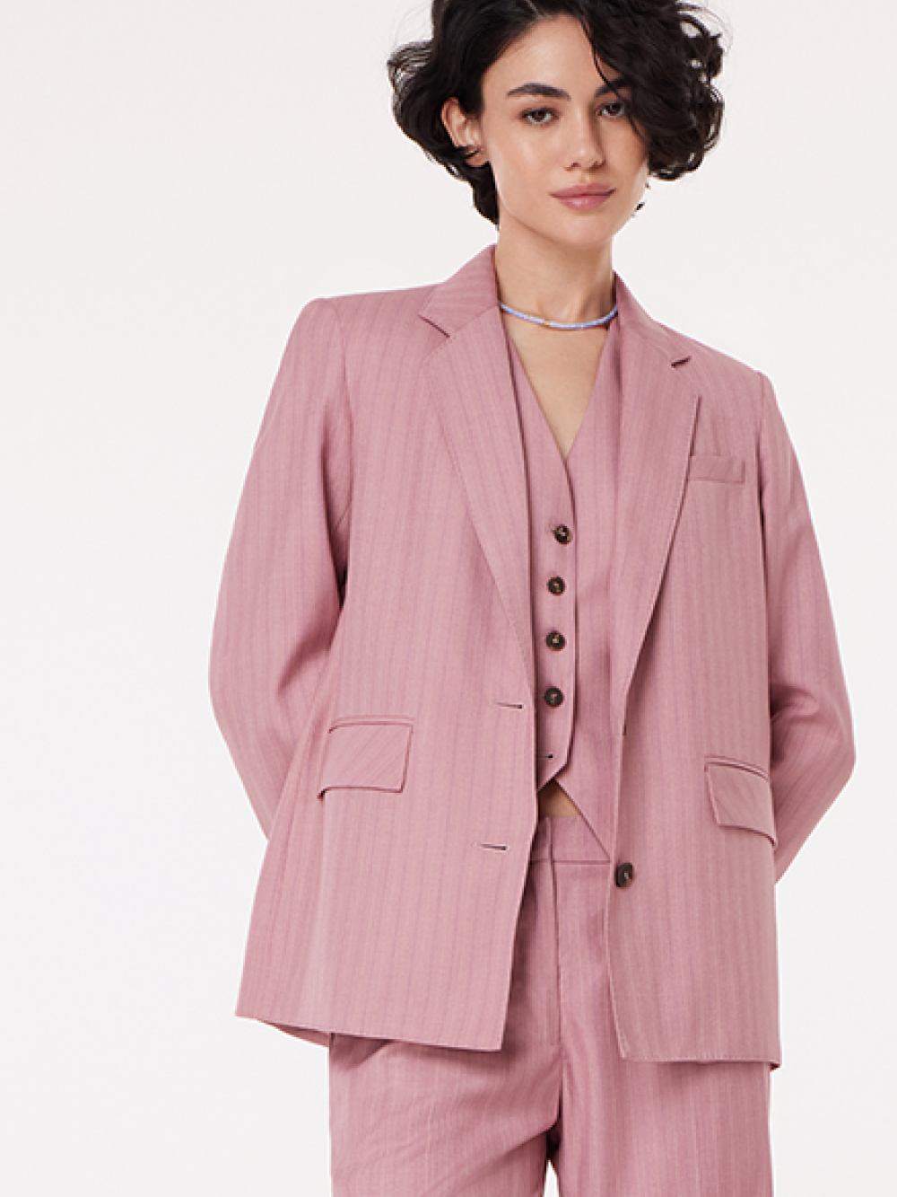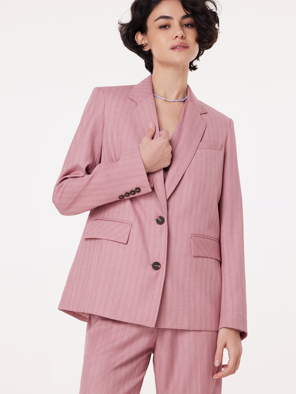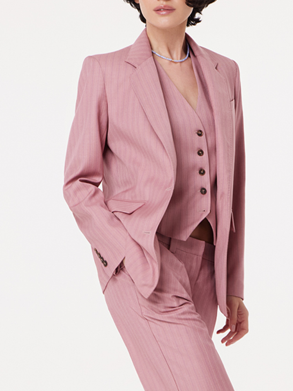 Элегантный жакет классического прямого силуэта с идеальной посадкой – эта модель будет актуальна всегда. На лацканах и полочках мы выполнили декоративную строчку в тон основной ткани. Жакет выполнен из костюмной ткани высокого качества с вискозным шёлком в составе. Дополните жакет жилетом и брюками для создания элегантной тройки или сочетайте с джинсами.