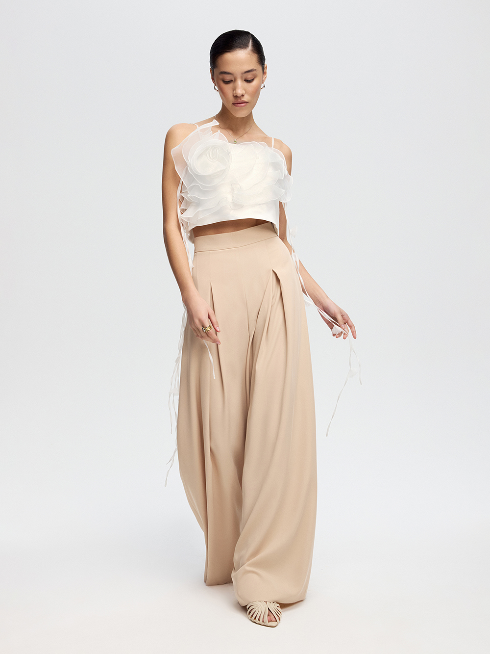 Брюки-палаццо со встречной складкой
