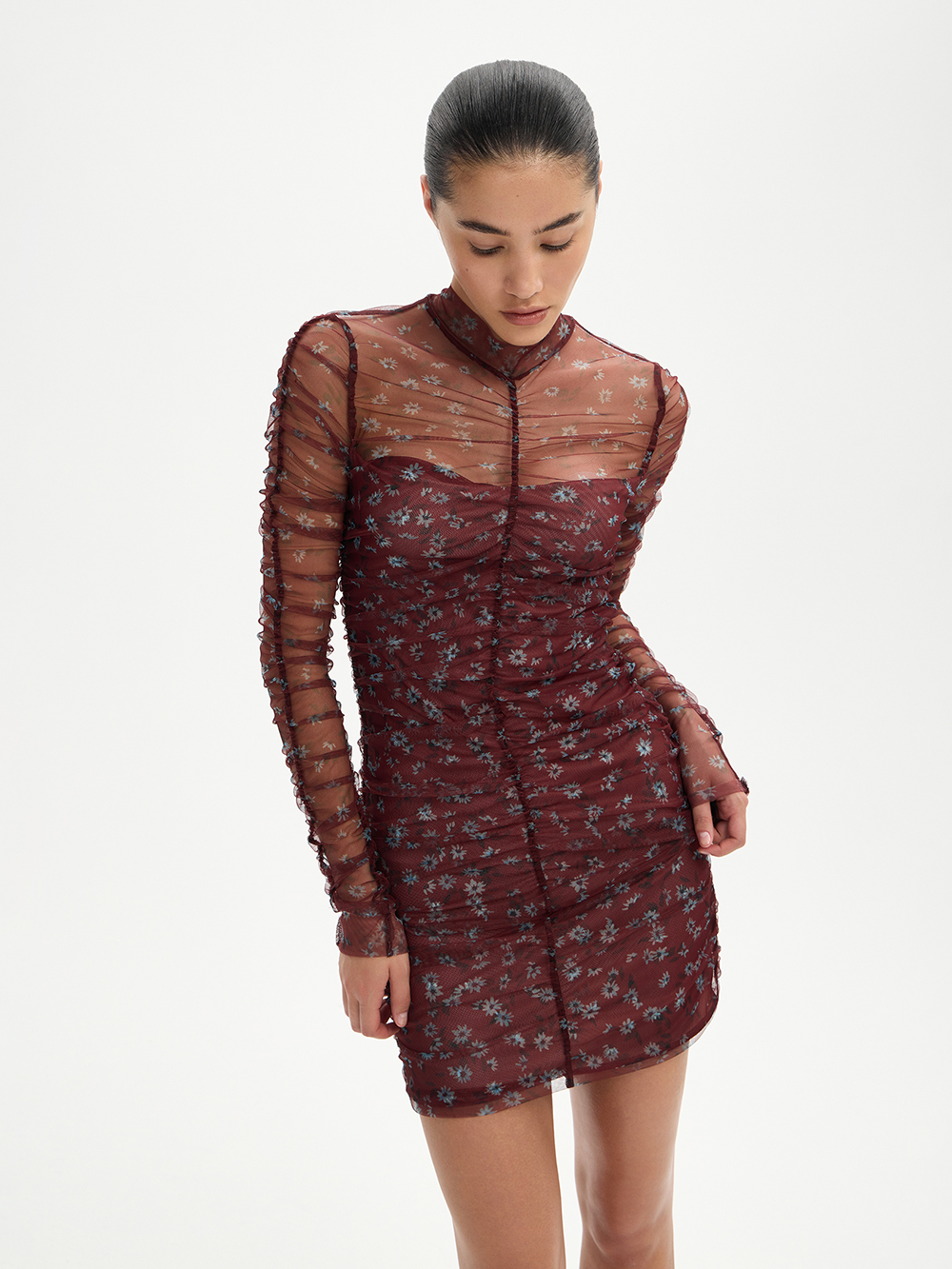 Платье из принтованной сетки – нежной, лёгкой, приятной по ощущениям, которая хорошо тянется и мягко адаптируется к вашему телу, создавая безупречный силуэт. Мы продумали каждую деталь для совершенства посадки: эластичную мягкую подкладку, пластичную драпировку, собранную на комфортные резинки, вырез для большого пальца на удлинённых рукавах. Платье входит в серию Limided и выпущено ограниченным тиражом.