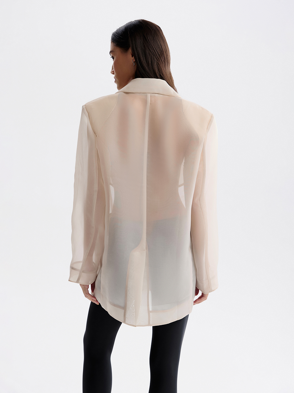 Жакет из органзы – эффектная вечерняя альтернатива элегантному двубортному жакету. Модель выполнена из матовой полупрозрачной органзы по крою классического жакета: английский воротник, шлица, карманы с клапанами, застёжка на две пуговицы и подплечники для совершенства посадки. Мы всегда заботимся об эстетике изнаночной стороны, и во всех изделиях из органзы внутренние швы аккуратно закрыты. Предлагаем носить жакет с топами, платьями и в актуальном сочетании с леггинсами.