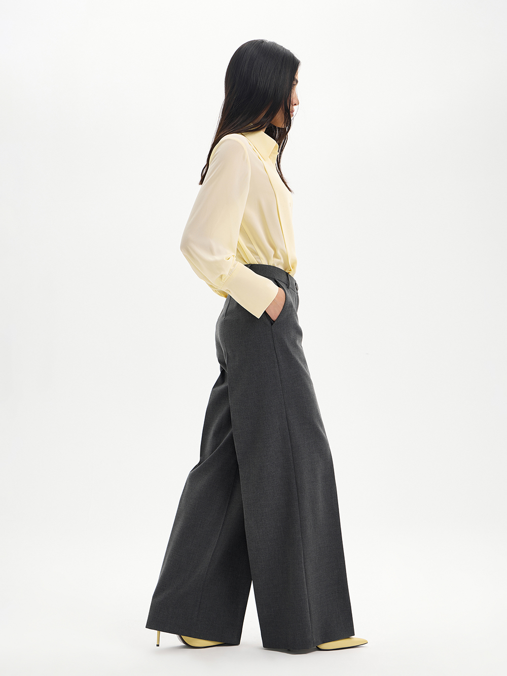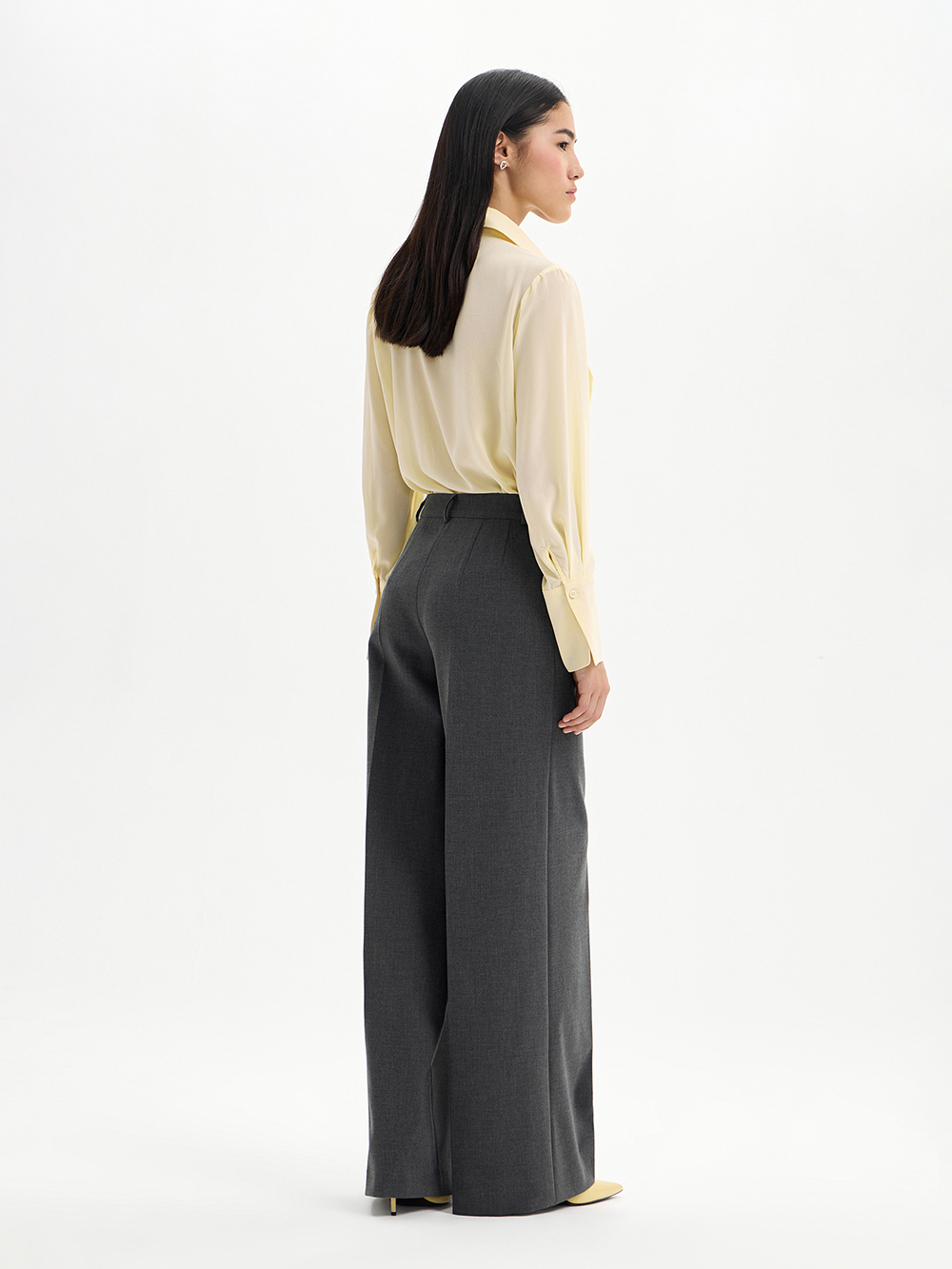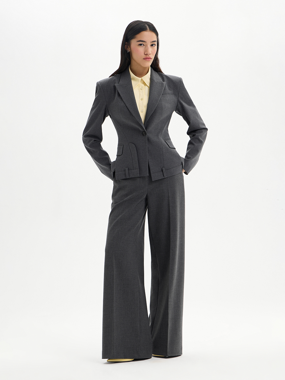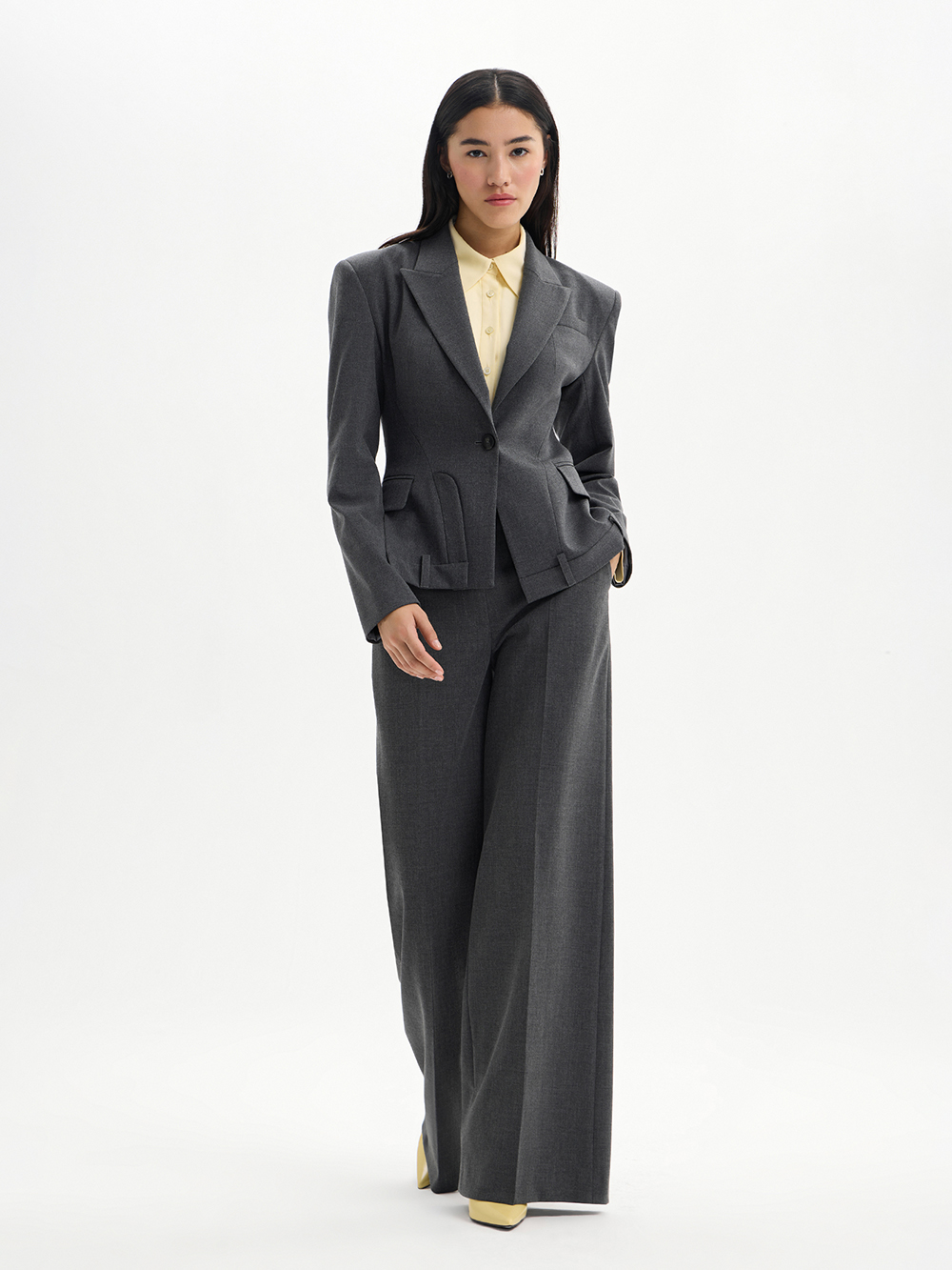 Элегантные брюки со стрелками выполнены из костюмной ткани высокого качества, приятной тактильно, пластичной и не слишком мнущейся. Брюки прямые, комфортной ширины, с классической посадкой на поясе. Есть карманы. Брюки застёгиваются на пуговицу и молнию, есть шлёвки для ремня. Носите брюки в паре с оригинальным жакетом с деконструкцией или стилизуйте сольно.