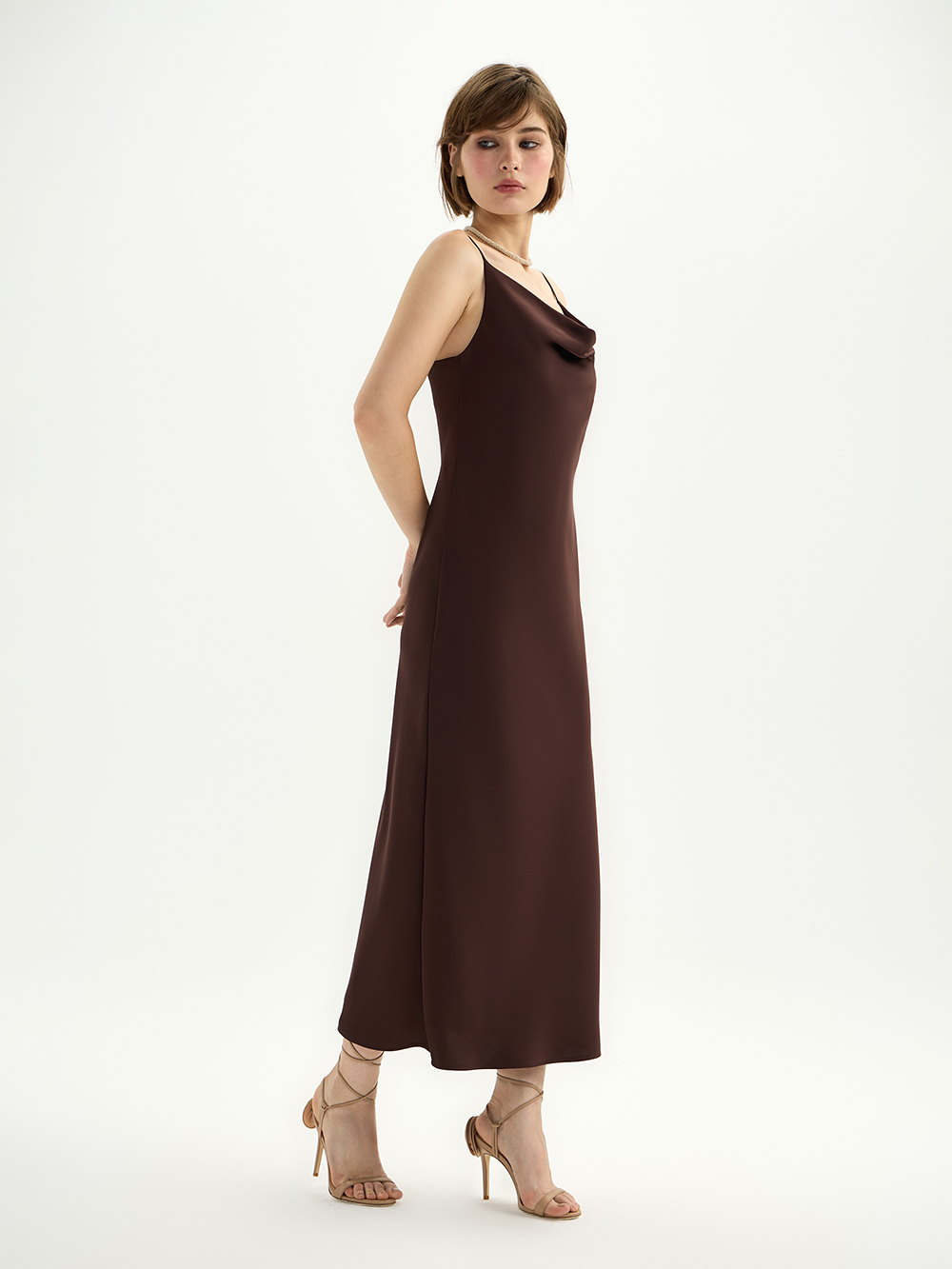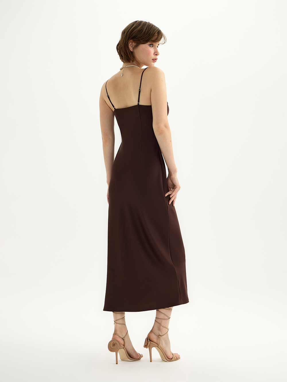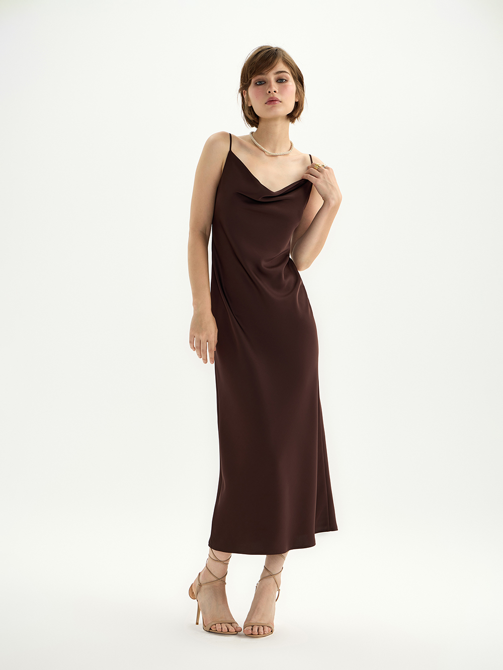 Платье-комбинация из гладкого сатина с деликатным блеском – готовый женственный образ, а ещё основа для мягкой многослойности с жакетами и вязаным трикотажем. Платье скроено по косой, поэтому словно обнимает тело, красиво струится и повторяет контуры фигуры. Для совершенства посадки и комфорта на груди предусмотрена ткань в два слоя. Бретели можно регулировать по длине на свой рост.