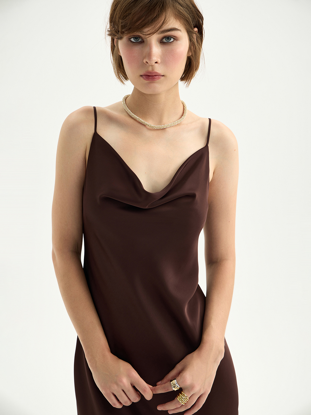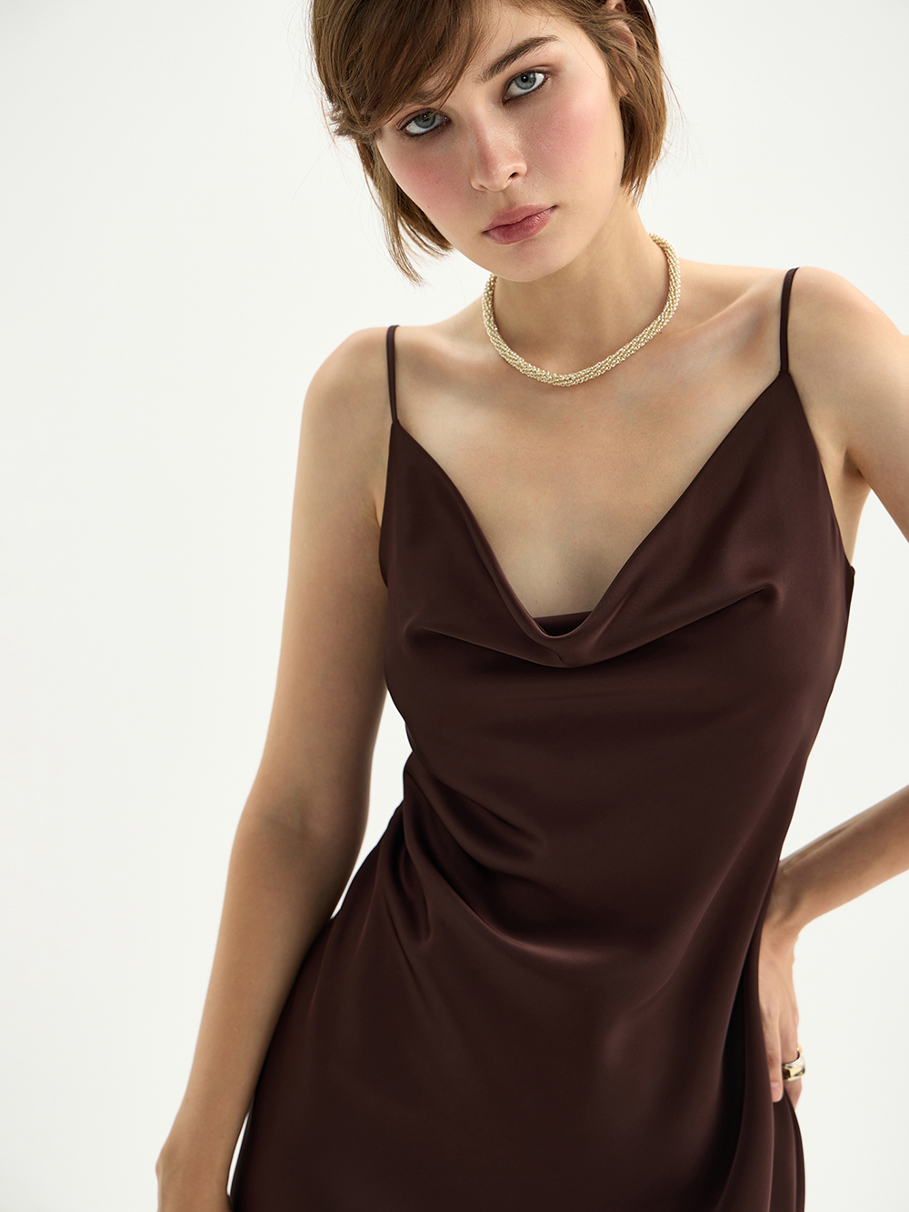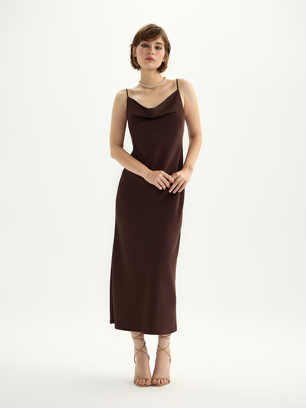 Платье-комбинация из гладкого сатина с деликатным блеском – готовый женственный образ, а ещё основа для мягкой многослойности с жакетами и вязаным трикотажем. Платье скроено по косой, поэтому словно обнимает тело, красиво струится и повторяет контуры фигуры. Для совершенства посадки и комфорта на груди предусмотрена ткань в два слоя. Бретели можно регулировать по длине на свой рост.