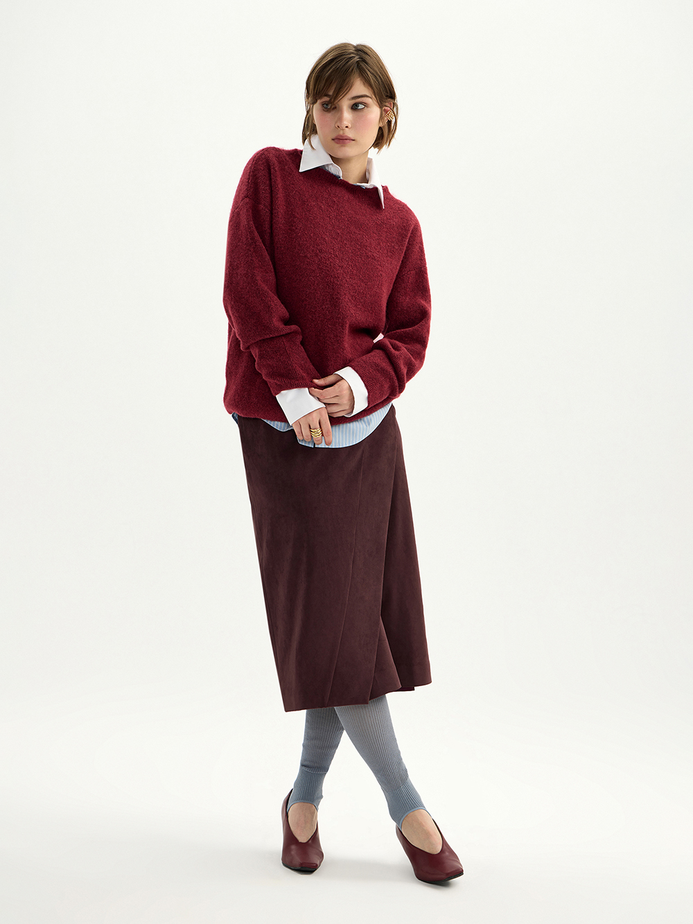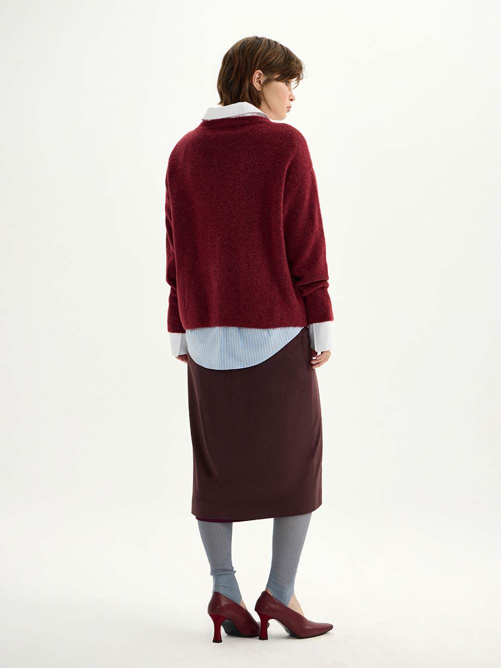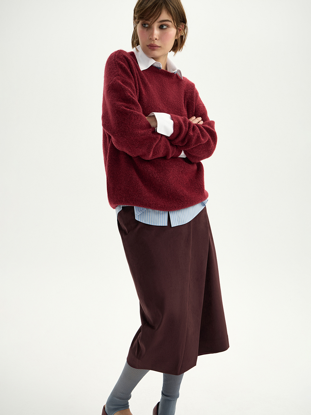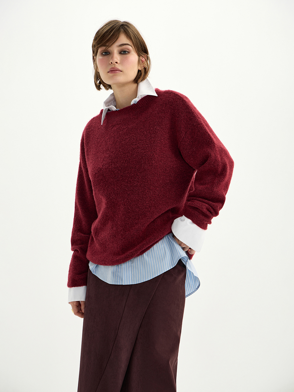 Свитер из тонкой шерстяной пряжи с альпакой в составе получился мягким и воздушным. Благодаря высокому проценту согревающей шерсти в составе свитер очень тёплый, при этом тонкий и лёгкий. Сохранить форму и долговечность изделию помогают искусственные волокна в составе пряжи.