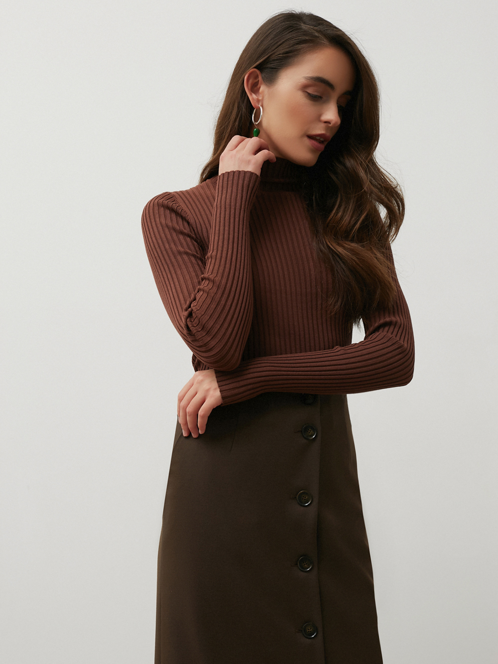 На модели юбка размера XS