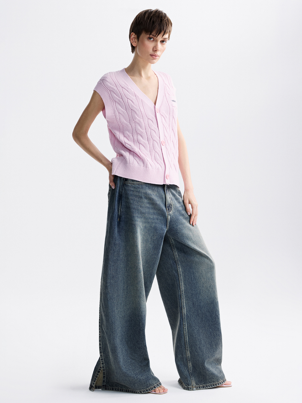 На модели безрукавка размера S