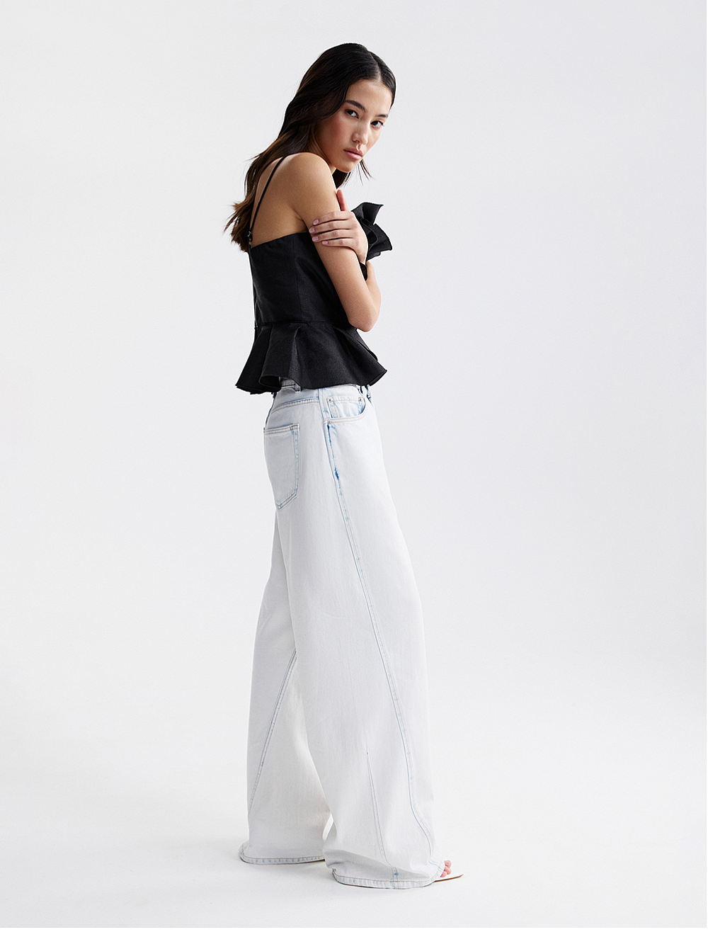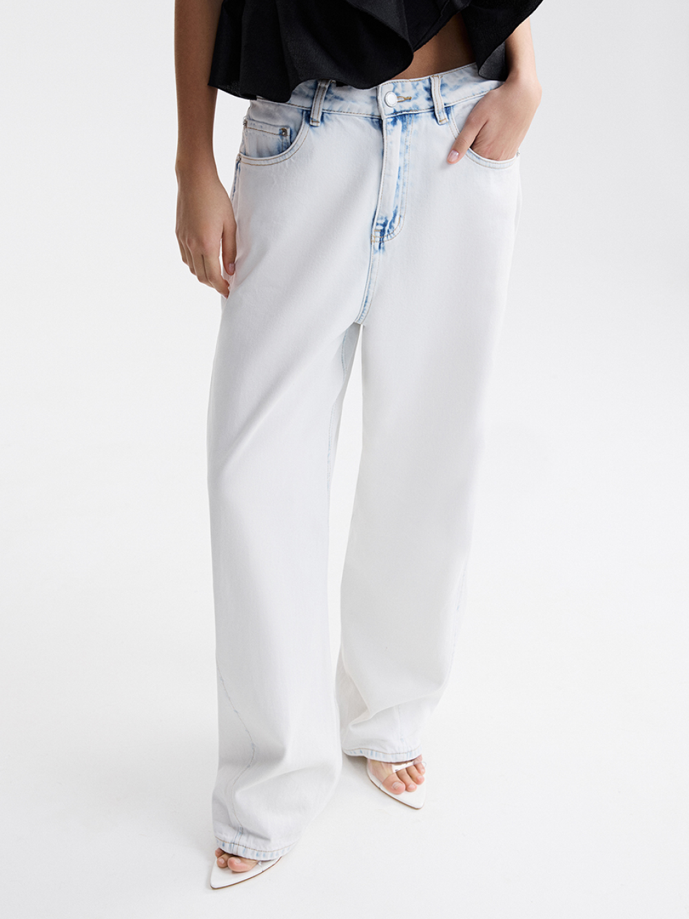 На модели джинсы размера 26