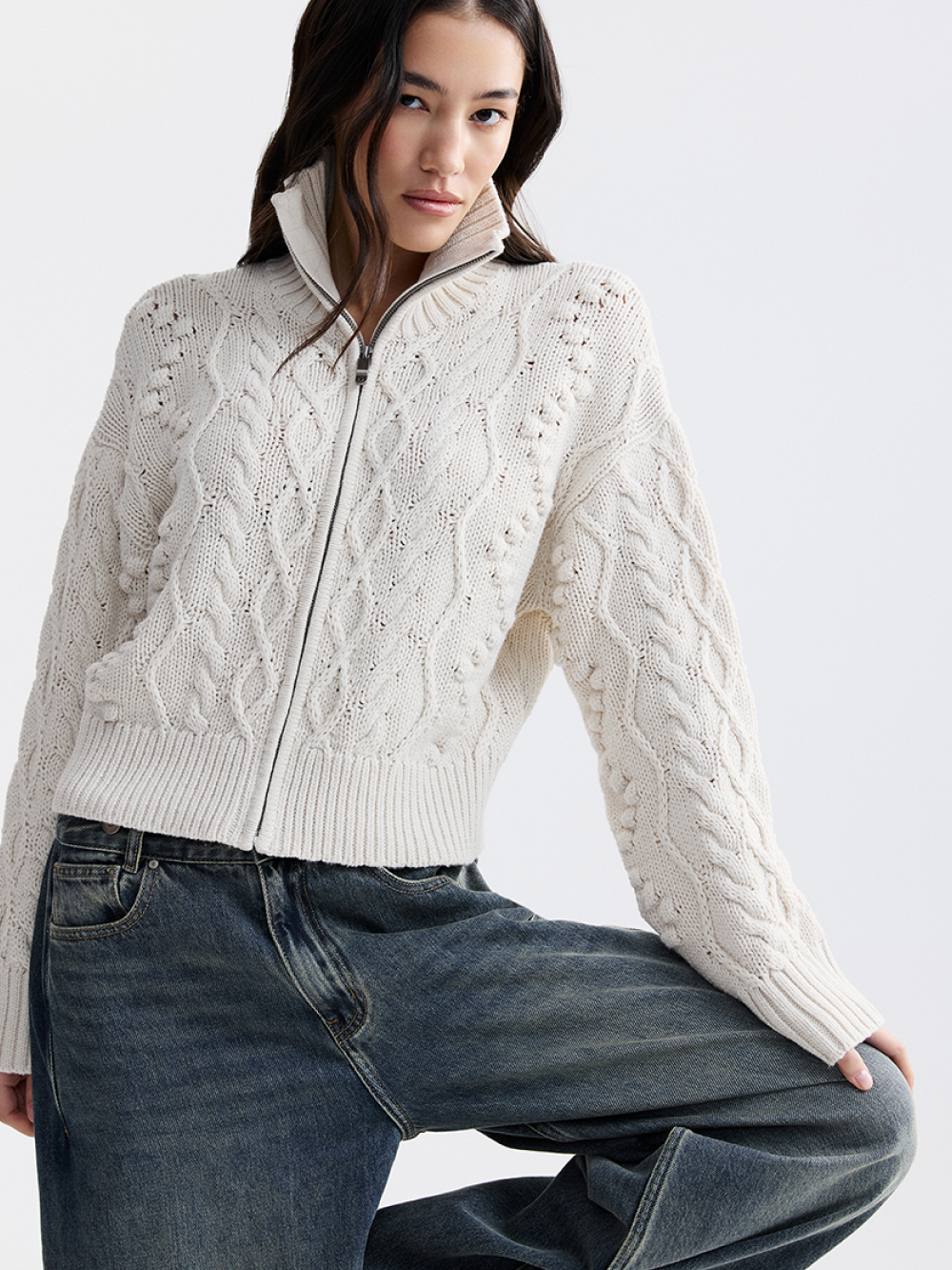 Толстовка на молнии с рельефной вязкой
