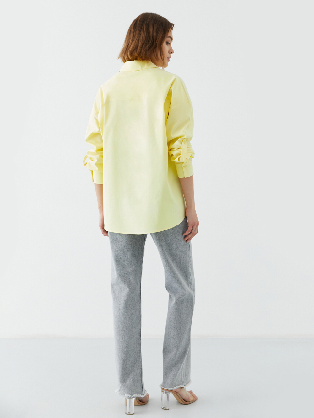 На модели рубашка размера XS