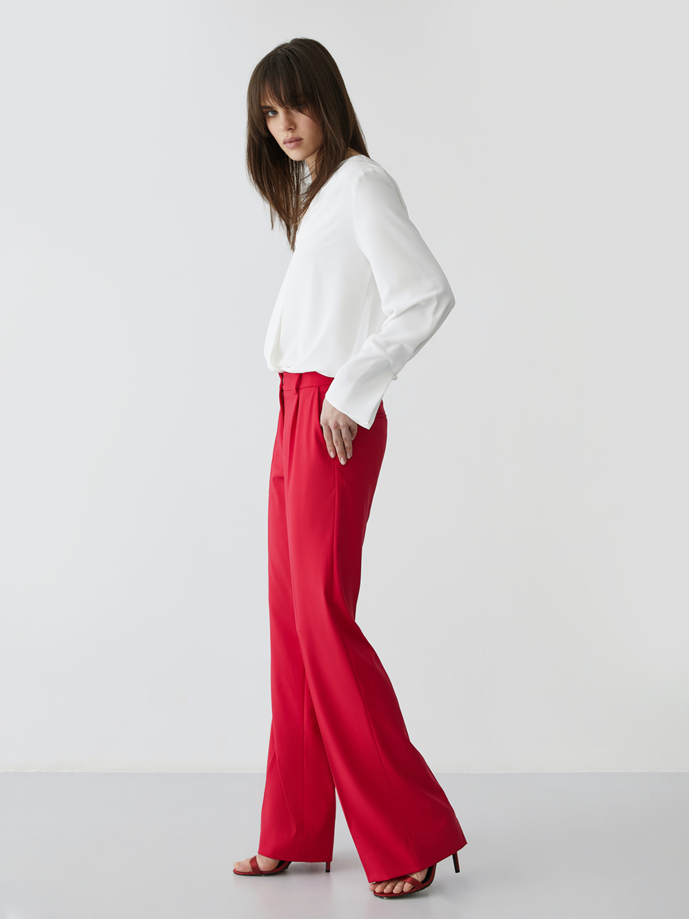Брюки прямые со стрелками. Актуальную модель с заниженной посадкой можно стилизовать для любых образов, от формальных и повседневных до коктейльных. Брюки застёгиваются на крючок и молнию. Есть карманы. Брюки выполнены из костюмной поливискозы высокого качества.