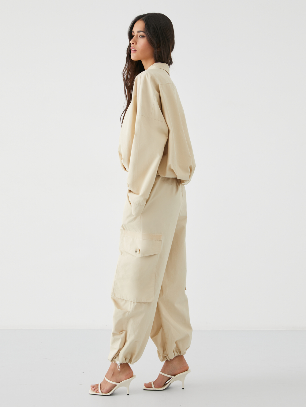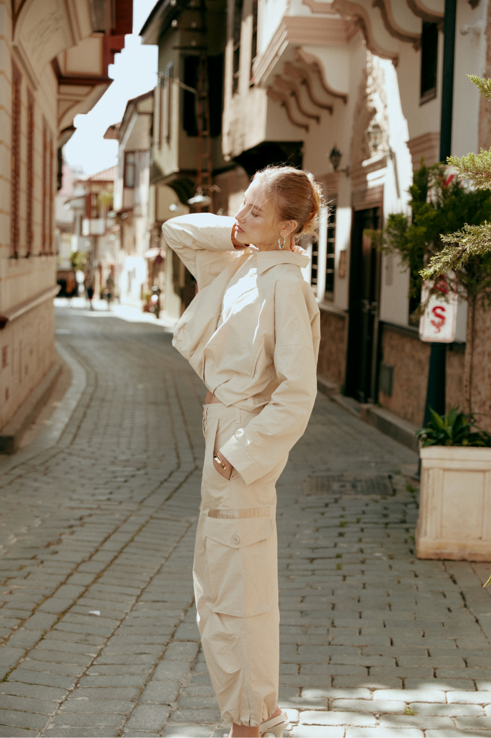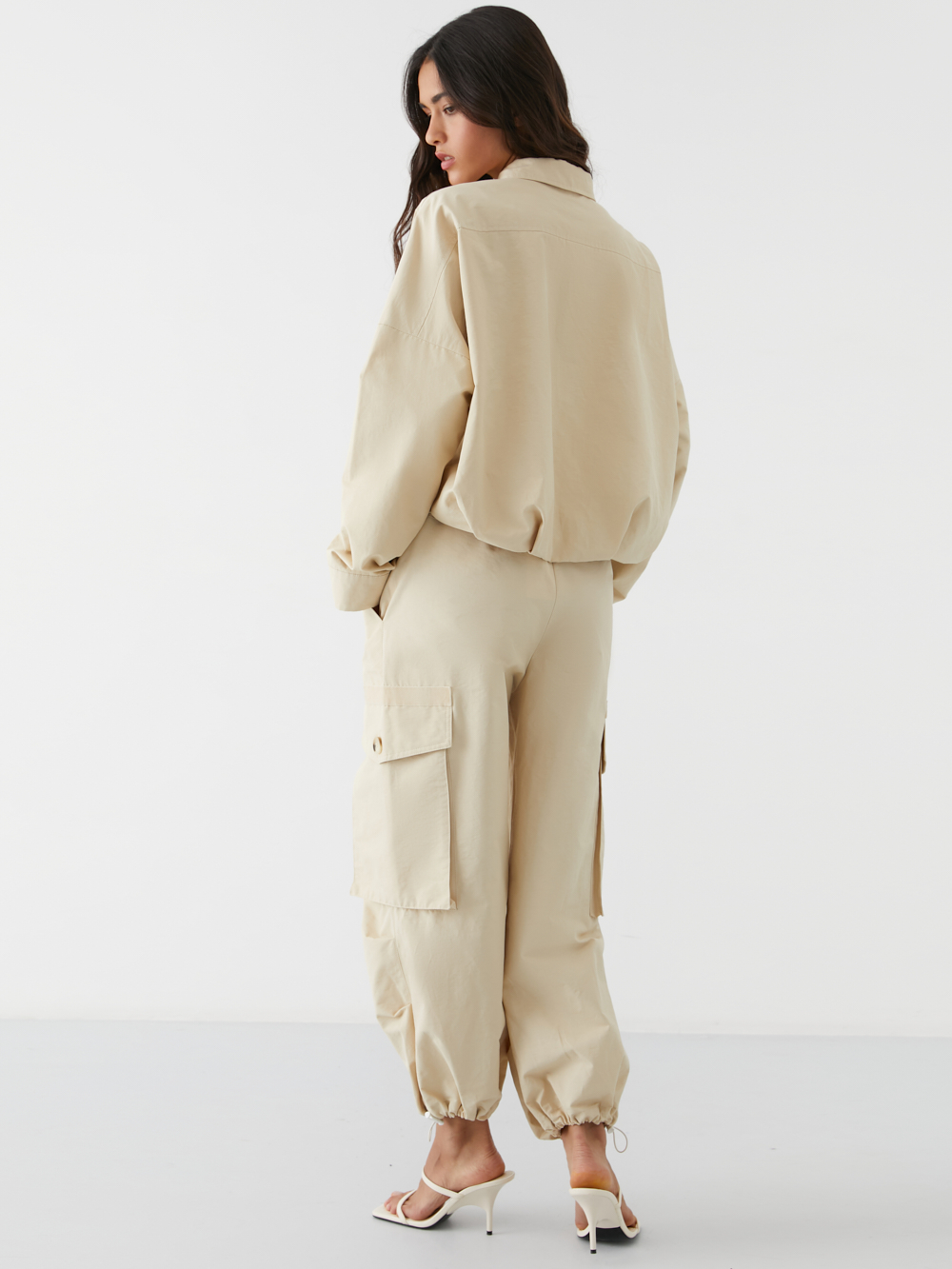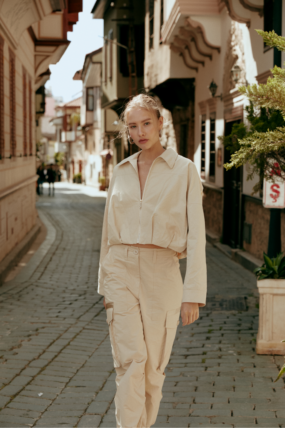 Ветровка на молнии. Выполнена из плотной ткани с хлопком в составе. Особенность укороченной модели – складки, заложенные внизу и придающие ветровке актуальную объёмную форму. Есть карманы. Ветровка идеально дополнит стильные образы и составит дуэт с брюками карго из коллекции SOLO·U.