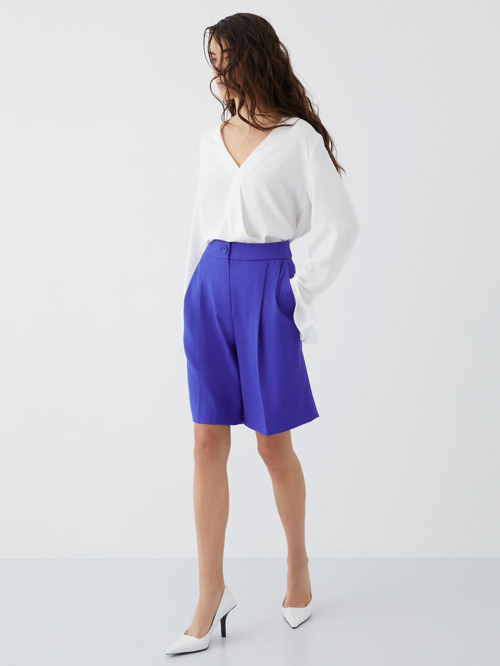 Блузка на запах из гладкой ткани. Для комфорта V-образный вырез зафиксирован. Особенность модели – необычные манжеты. Блузку легко встроить как в деловые образы, так и в повседневные в сочетании с юбками и брюками из коллекции SOLO·U. Блузка выполнена из лёгкой немнущейся ткани. Она красиво струится, приятна по ощущениям и не требует сложного ухода.