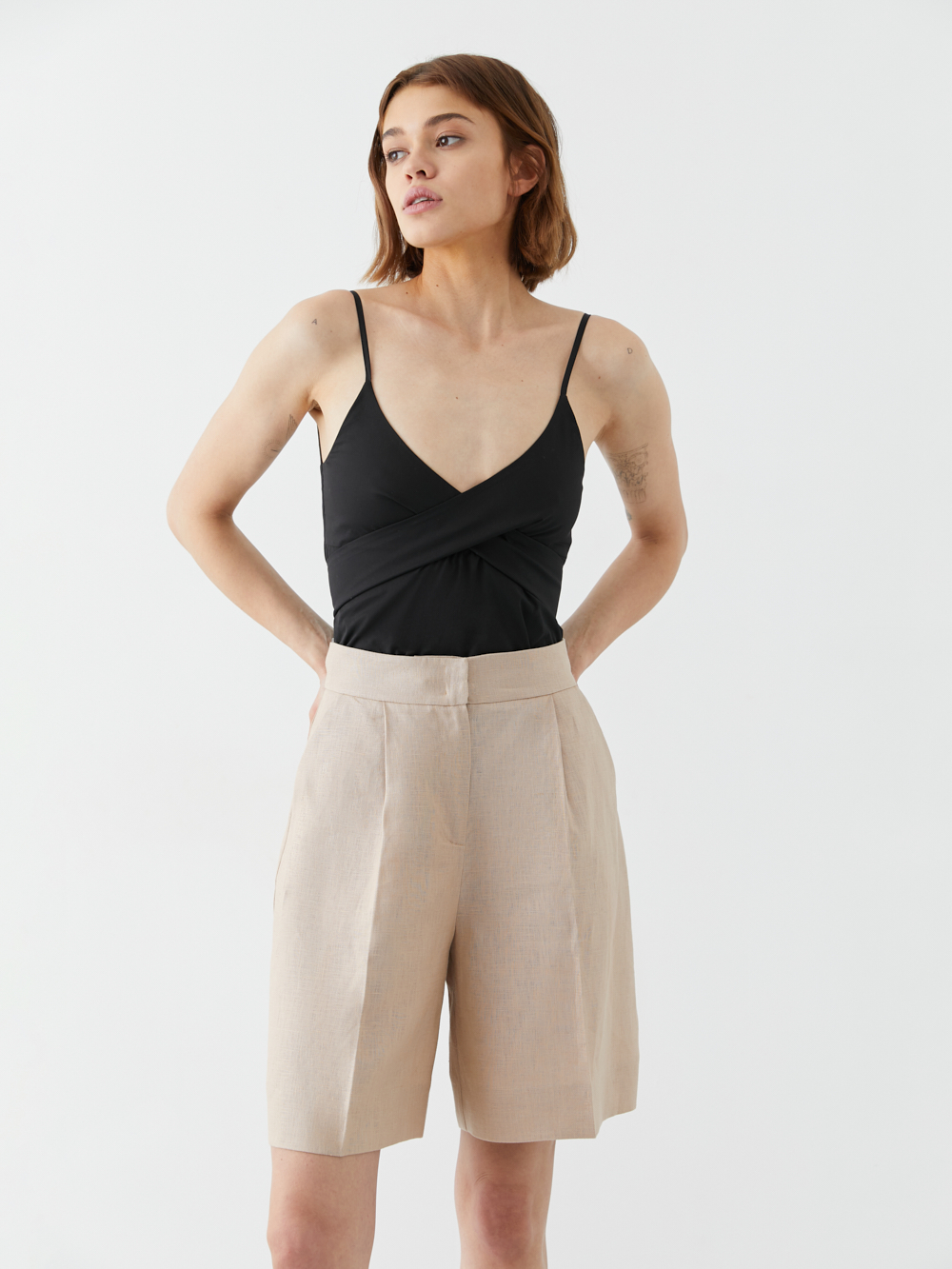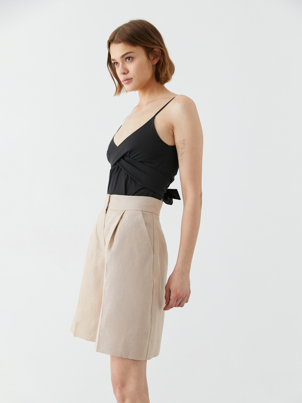 Топ на тонких бретелях с бантом на груди. Декоративные ленты можно стильно перекрутить или завязать, как вам нравится. Бретели можно регулировать по длине. Топ выполнен из лёгкого хлопка, мягкого и приятного к коже.