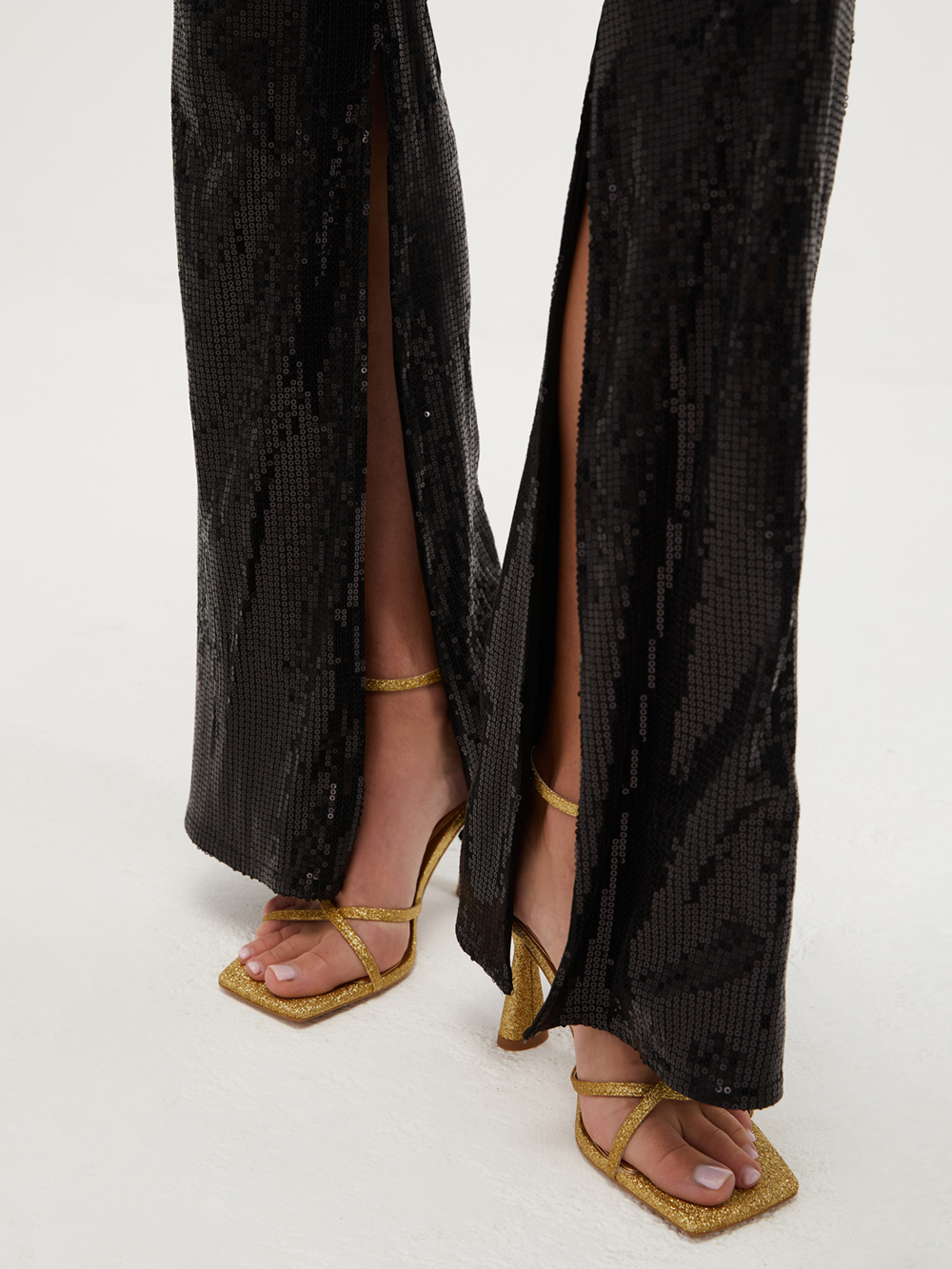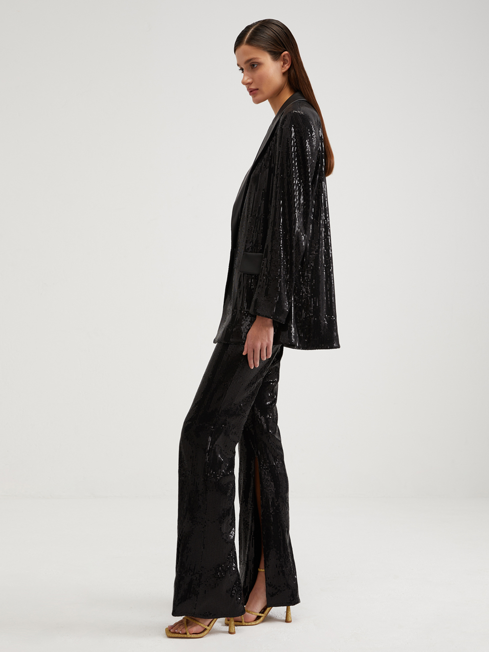 Брюки с пайетками с разрезами
