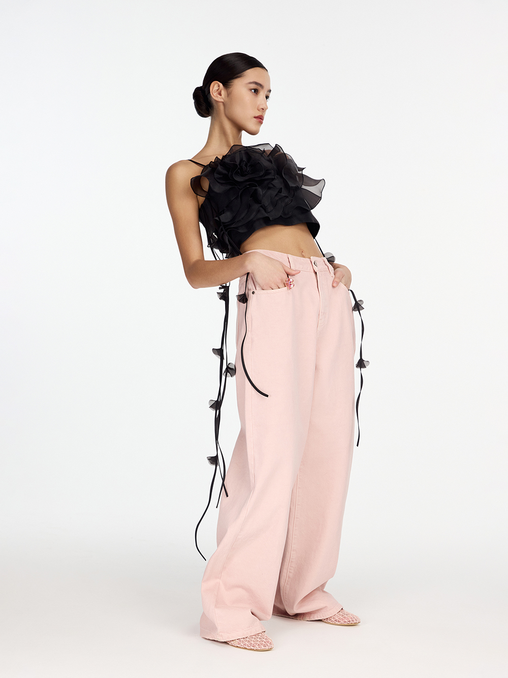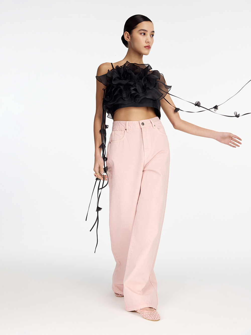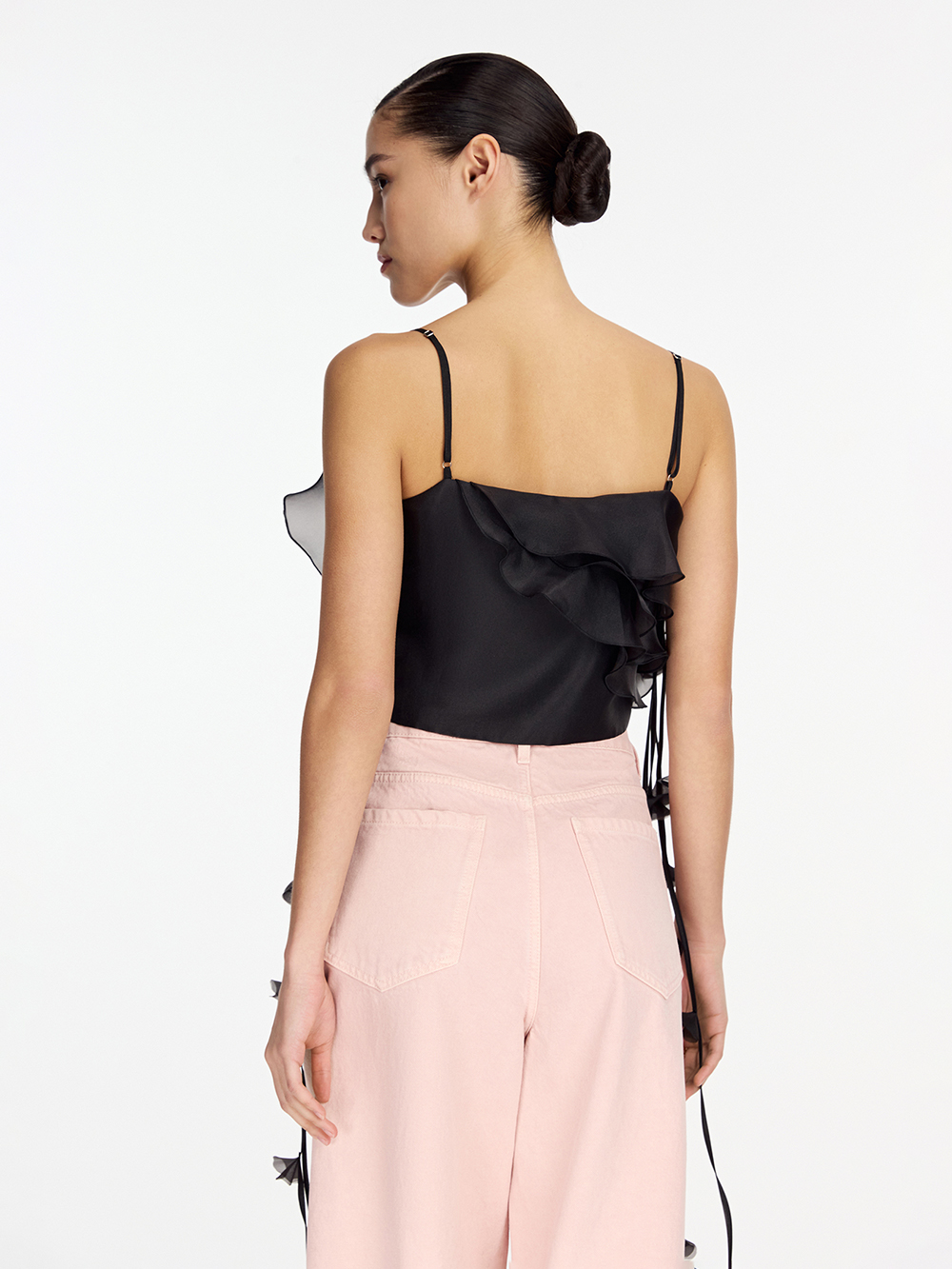 Топ Camellia – неименный бестселлер. Изящный топ с камелией из органзы может послужить основой вечернего образа и украсить дневной – в сочетании с джинсами. В создании модели много сложной ручной работы, поэтому топ входит в серию limited. Топ выполнен из гладкой приятной ткани с шёлком в составе и дополнен декором из прозрачной органзы. Тонкие бретели можно регулировать по длине. Топ застёгивается на удобную молнию сбоку.
