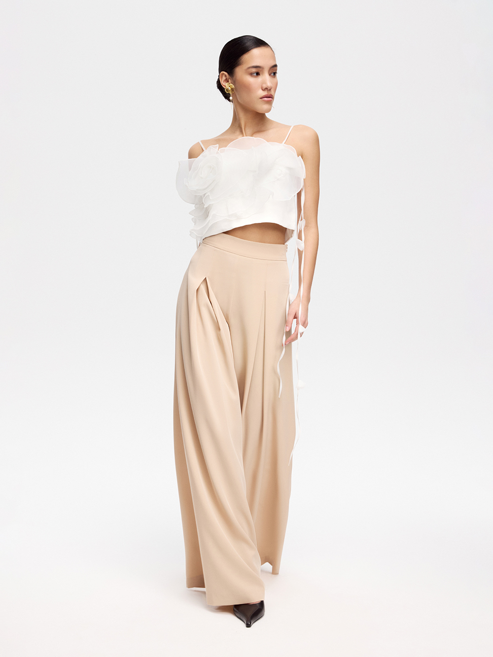 Брюки-палаццо со встречной складкой