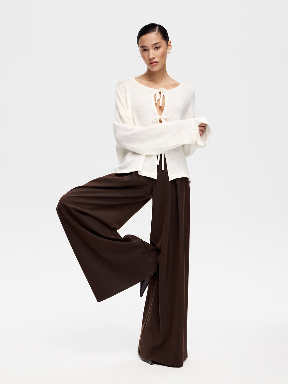 Брюки-палаццо со встречной складкой