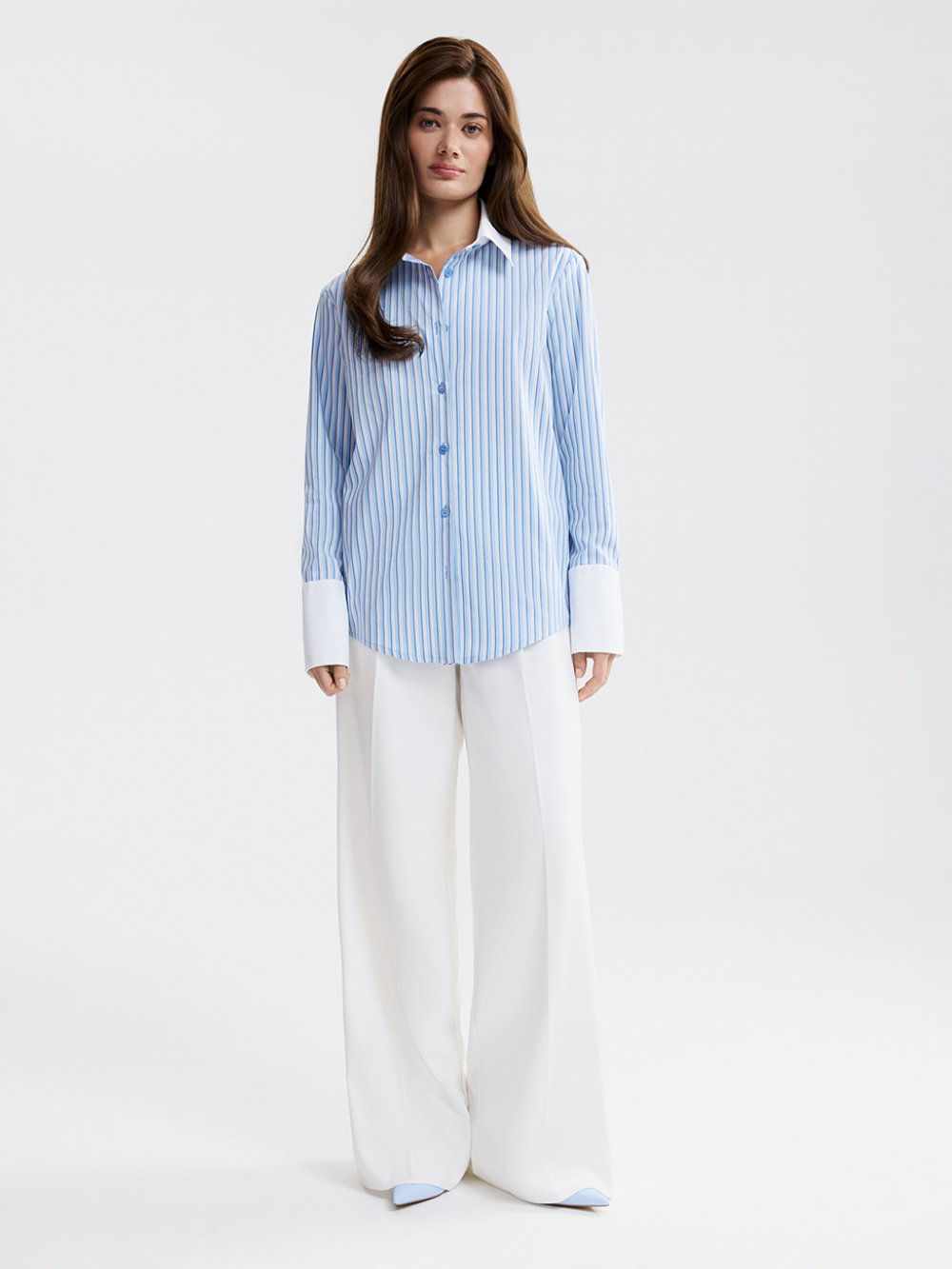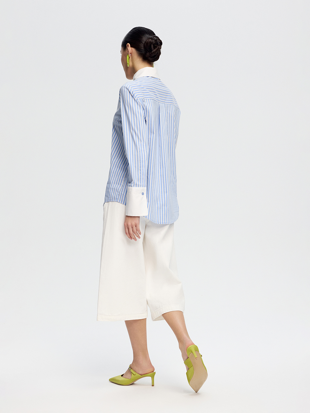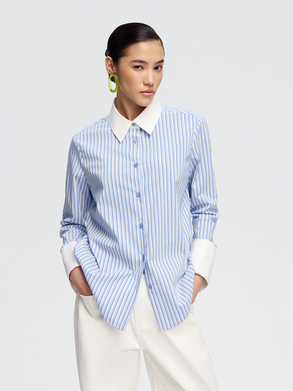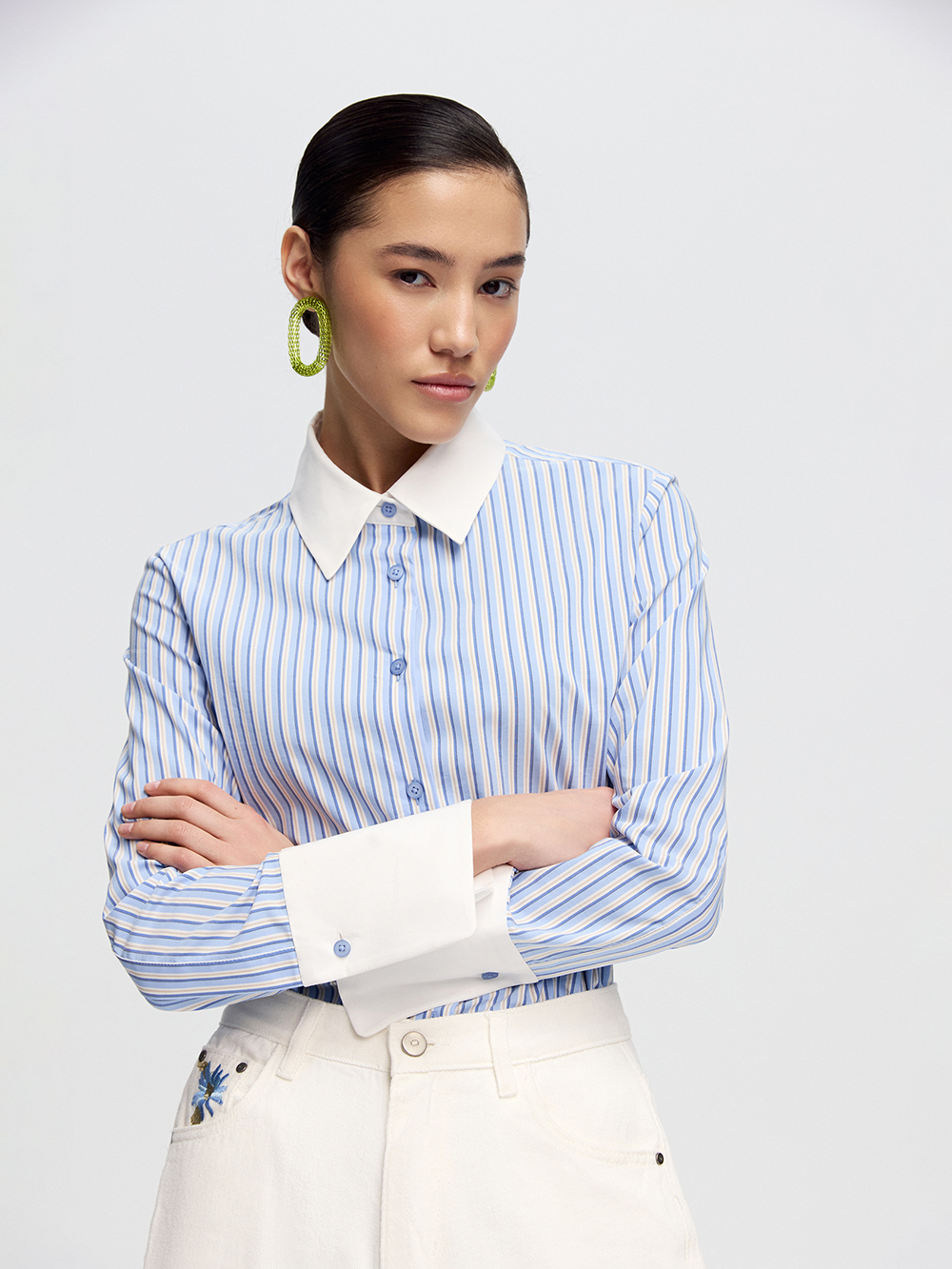Рубашка из хлопка – базовая модель, лежащая в основе делового и повседневного гардероба. Мы сделали классическую сорочку акцентной за счёт контрастного воротника и манжетов. У рубашки актуальная посадка, дающая свободу, но аккуратная, без лишнего объёма. Рубашка выполнена из приятной к телу хлопковой ткани с долей искусственных волокон, чтобы ткань меньше мялась, не теряла форму и за ней было проще ухаживать.