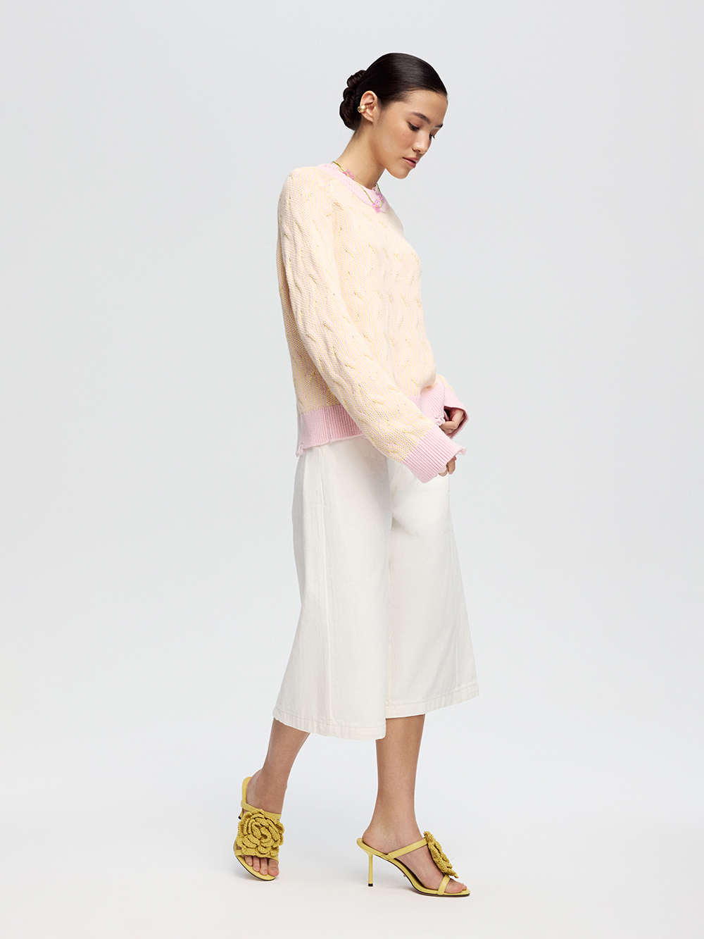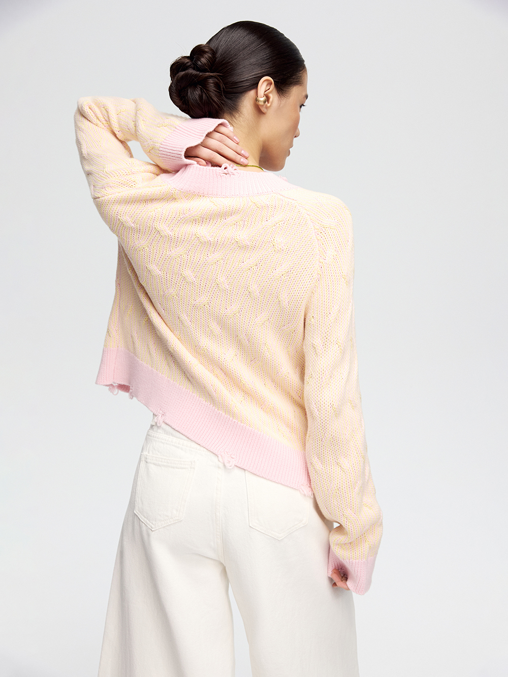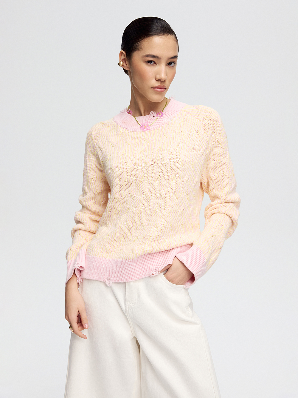 Мягкий свитер с фактурным узором и характером гранж. Свободный силуэт, аккуратный объём, рукав реглан – и спущенные петли на контрастной резинке создают ощущение мягкой расслабленности. Свитер связан из комфортной хлопковой пряжи с добавлением акрила для лёгкости, воздушности и сохранения формы изделия. Идеальная пара для джинсов из коллекции TRUE RED.