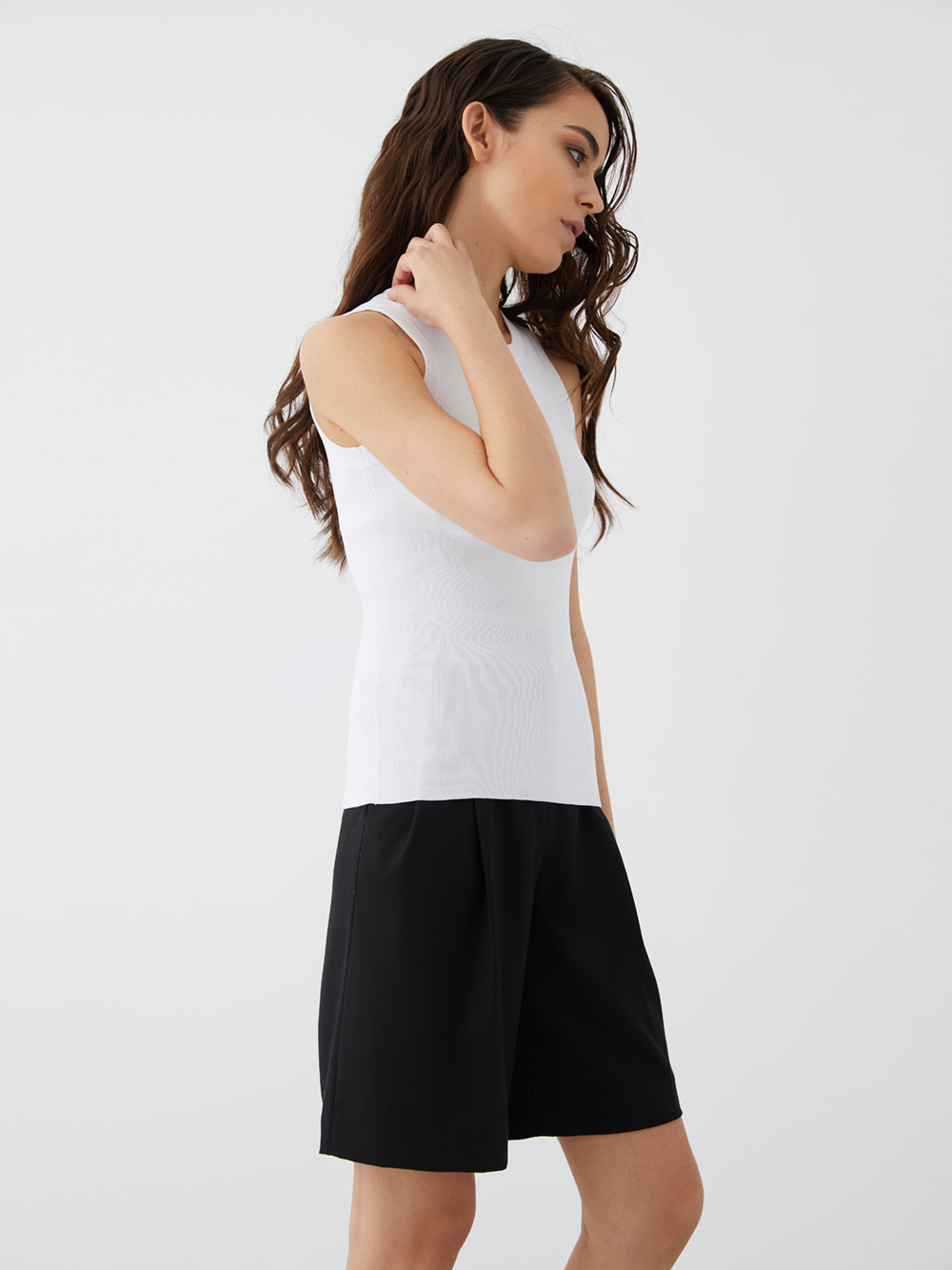 Вязаный топ из нежной к коже вискозы. Универсальная модель на каждый день. Топ красиво облегает силуэт и достойно выглядит как сольно, так и в сочетании с жакетом. У горловины и проймы – аккуратная окантовка. Вискоза делает изделие мягким, приятным и комфортным даже в жаркую погоду. В состав добавлены прочные волокна нейлона, благодаря которым топ не деформируется, становится практичнее в уходе и долговечнее.