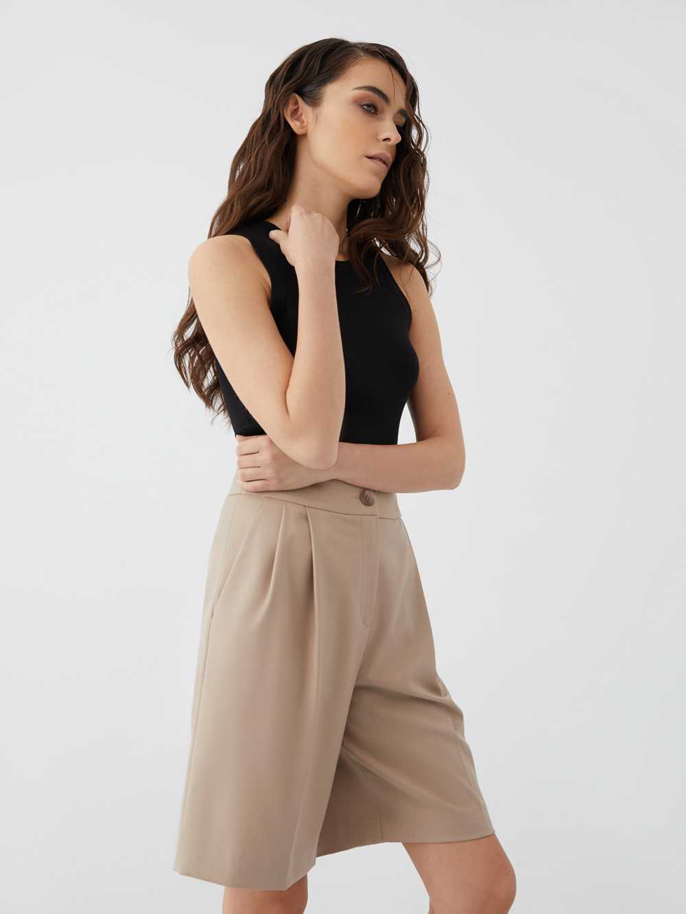 Однобортный жакет без лацканов. Застёгивается на одну пуговицу. Есть карманы. Жакет выполнен из поливискозы высокого качества, которая приятна по ощущениям и хорошо держит форму. Есть подкладка на основе шёлка. Лаконичная модель подойдёт для создания деловых и повседневных образов. Жакет составит идеальный комплект с бермудами из коллекции SOLO·U.